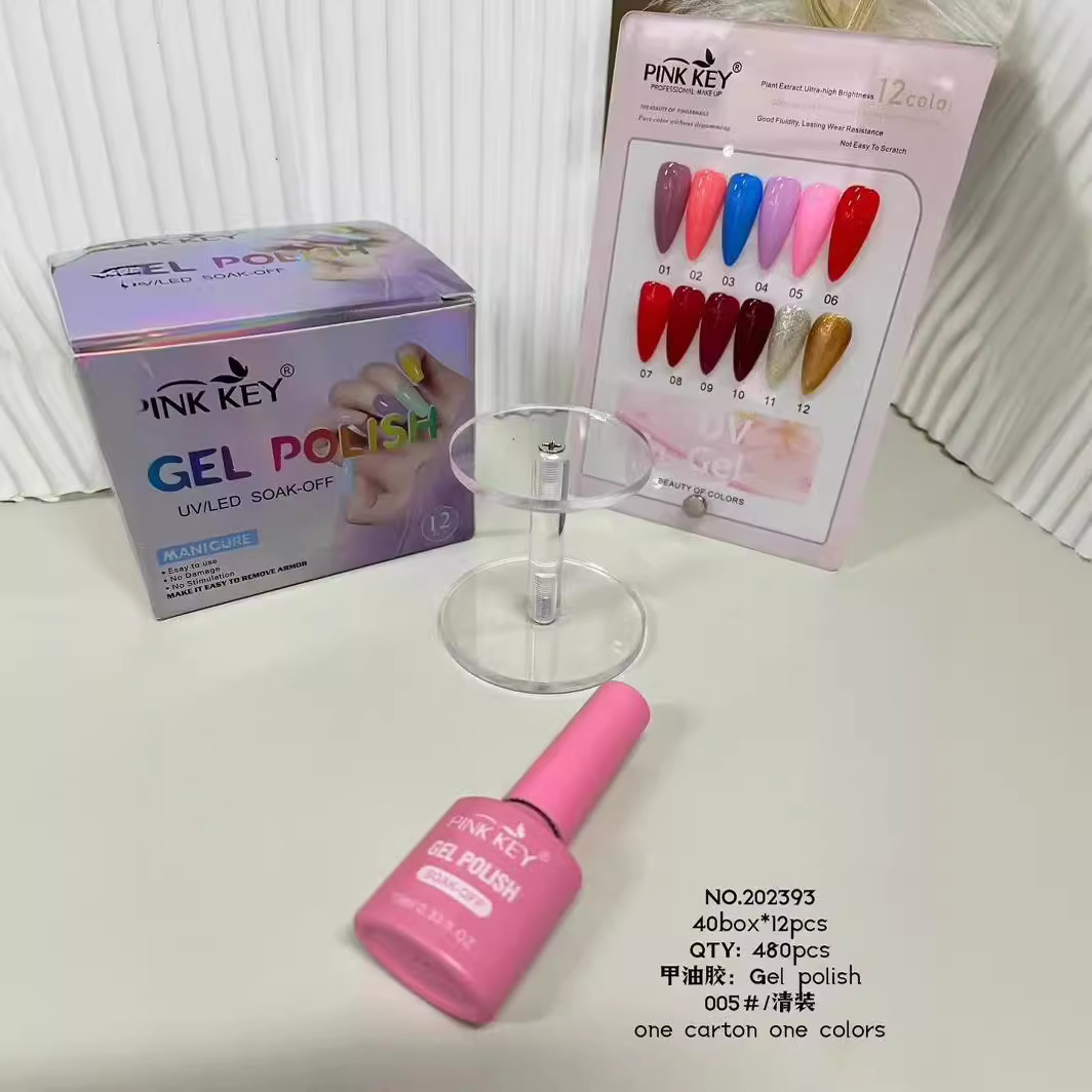 跨境新品PINK KEY光疗指甲油胶美甲店专用流行冰透裸色显白批发