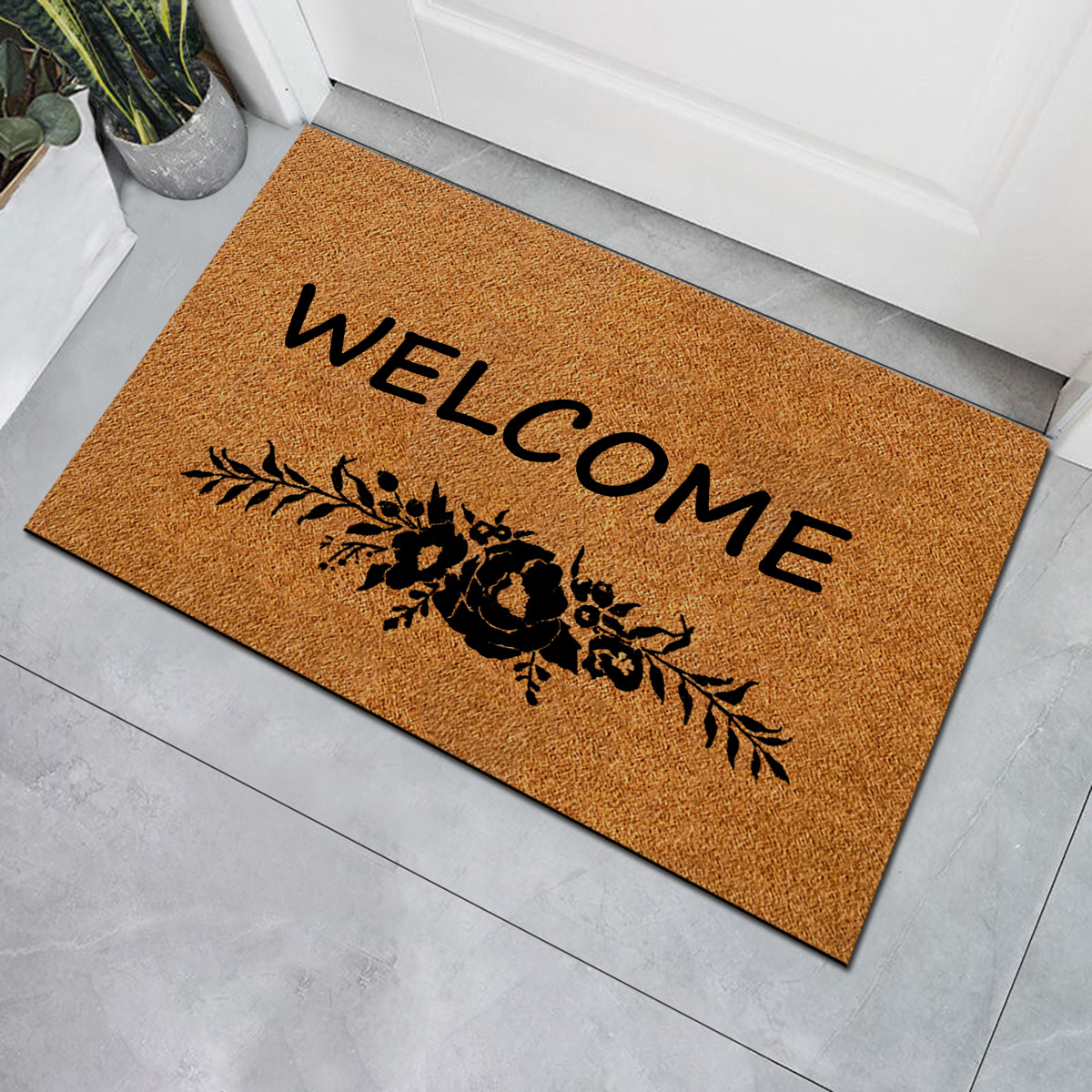 鲜花字母合集进门地毯防滑地垫家用入户刮沙泥门垫仿椰棕脚垫代发