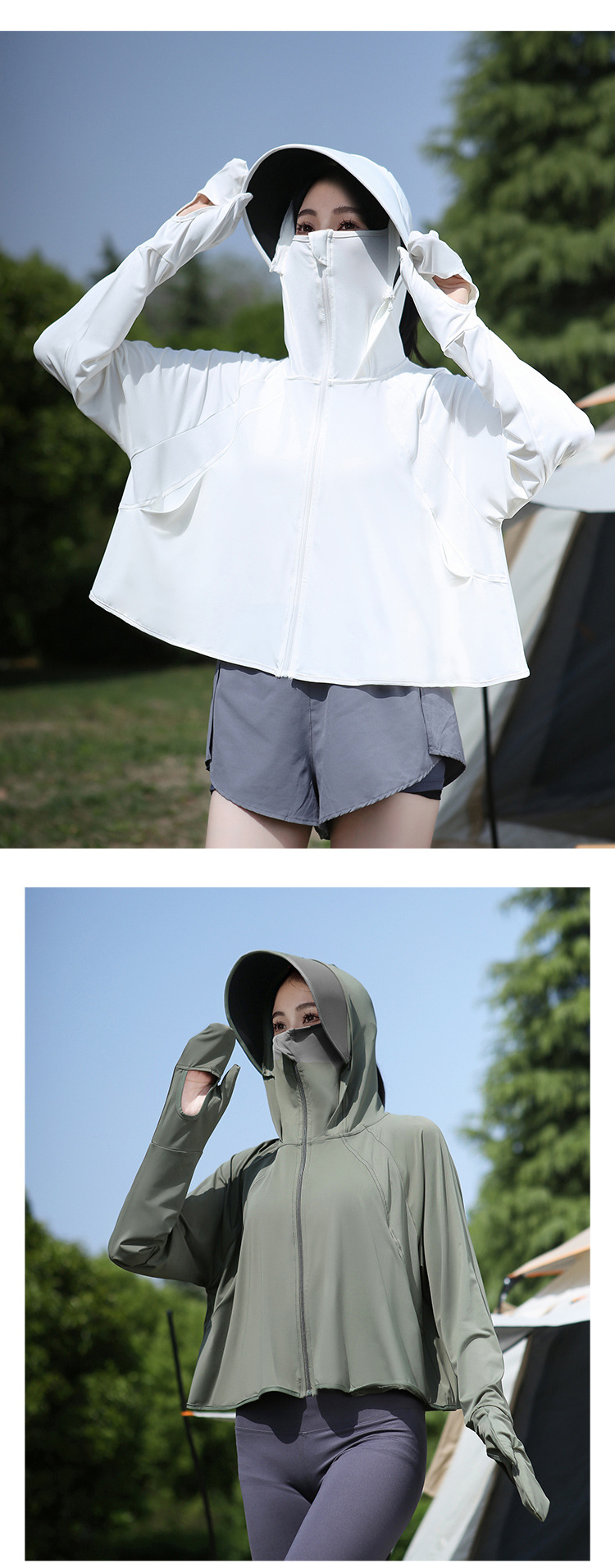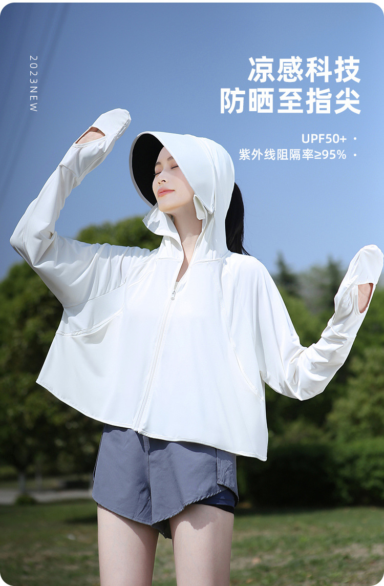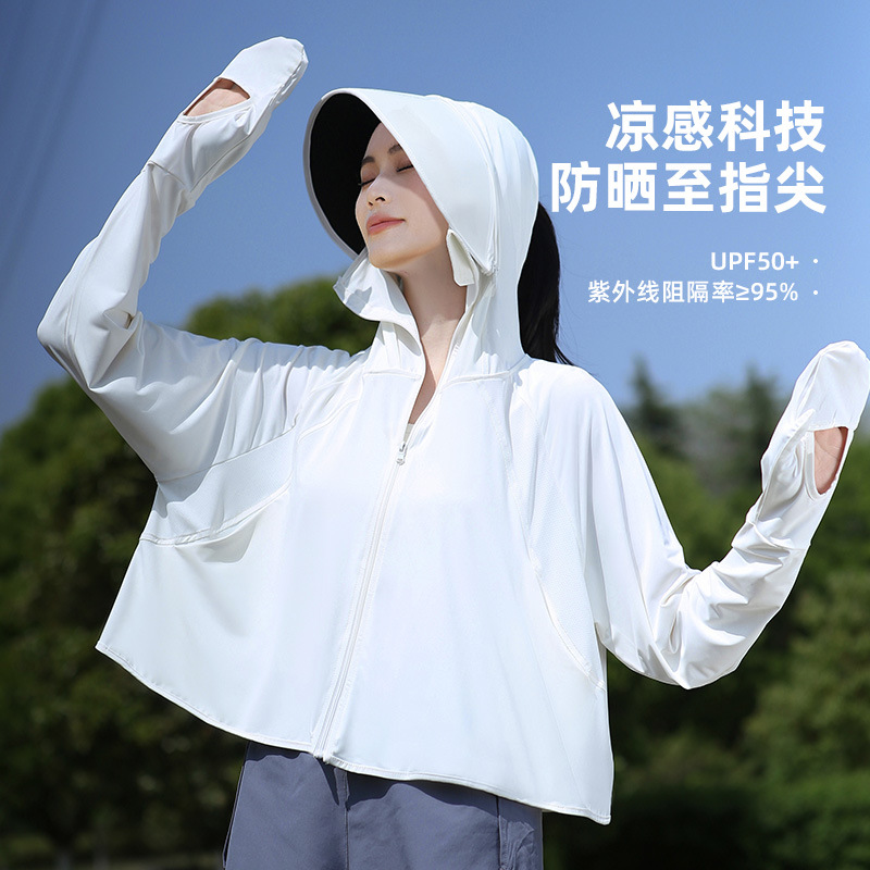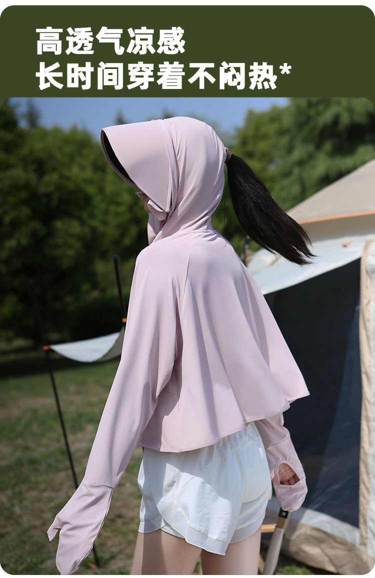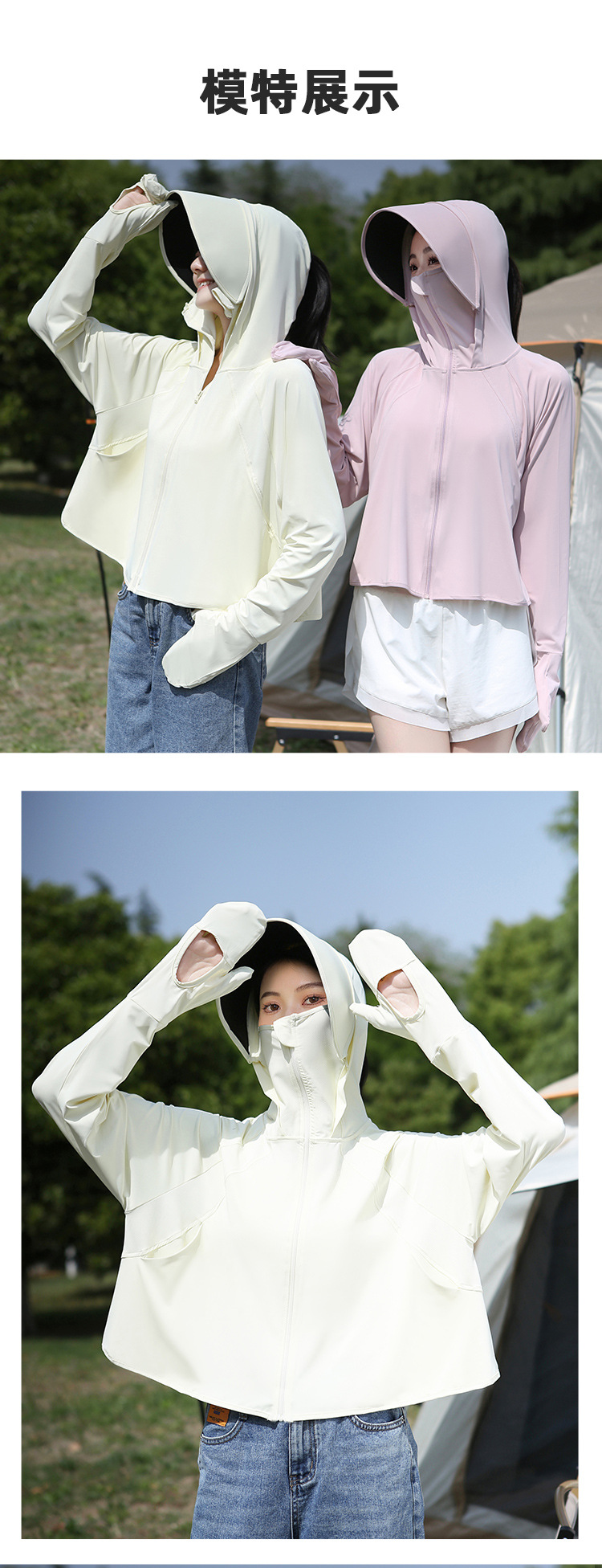 防晒衣女夏季新款黑胶帽檐防紫外线户外骑车透气冰丝护手薄防晒服