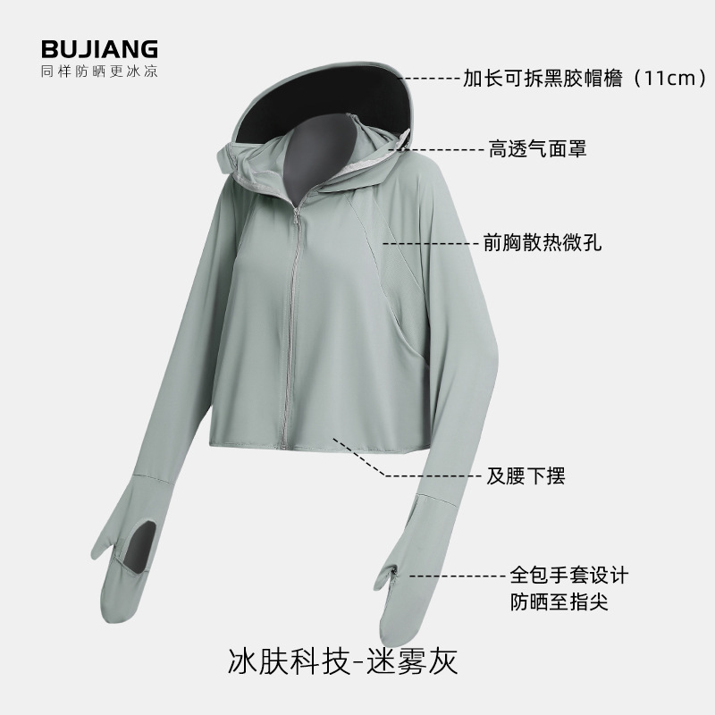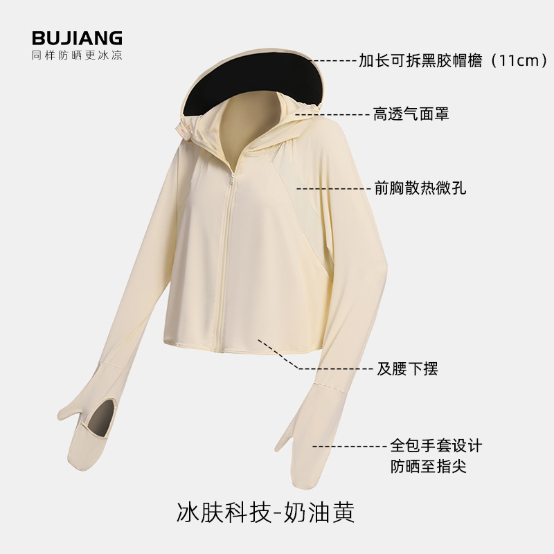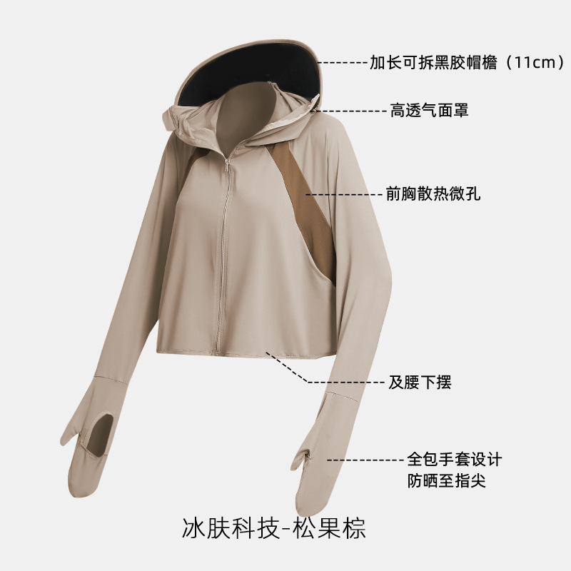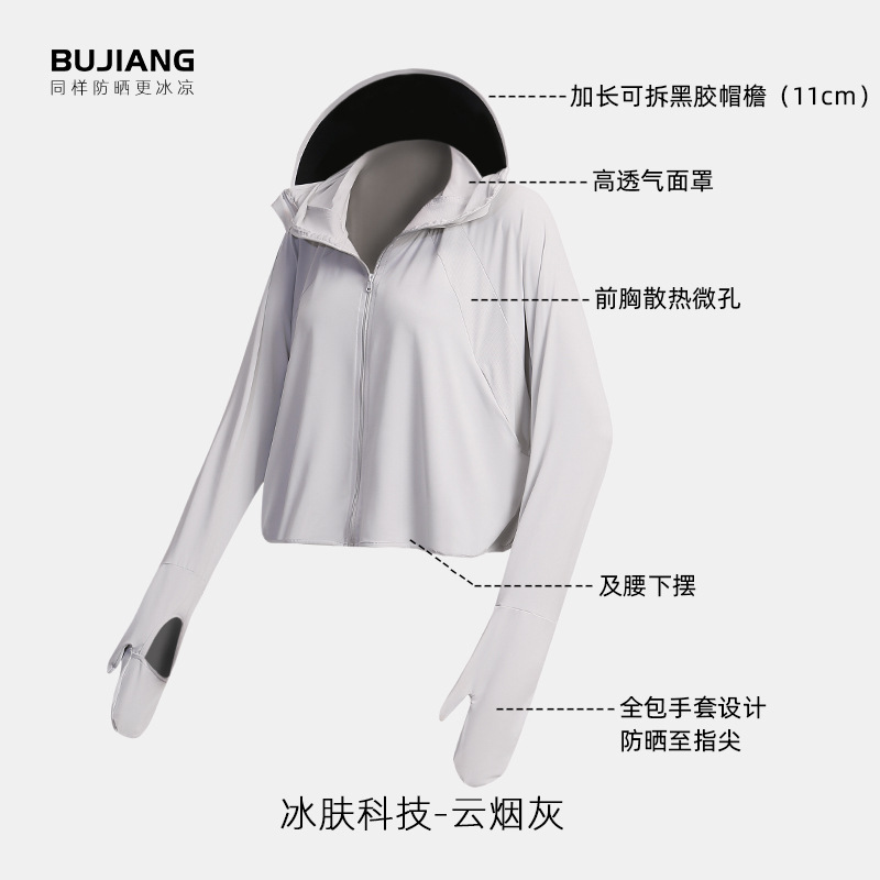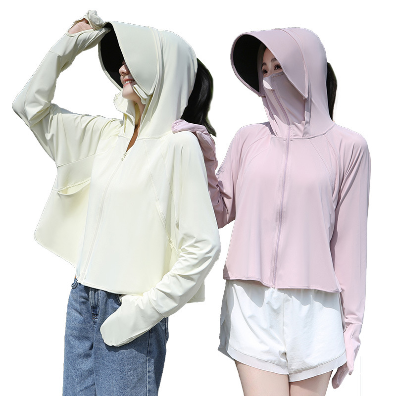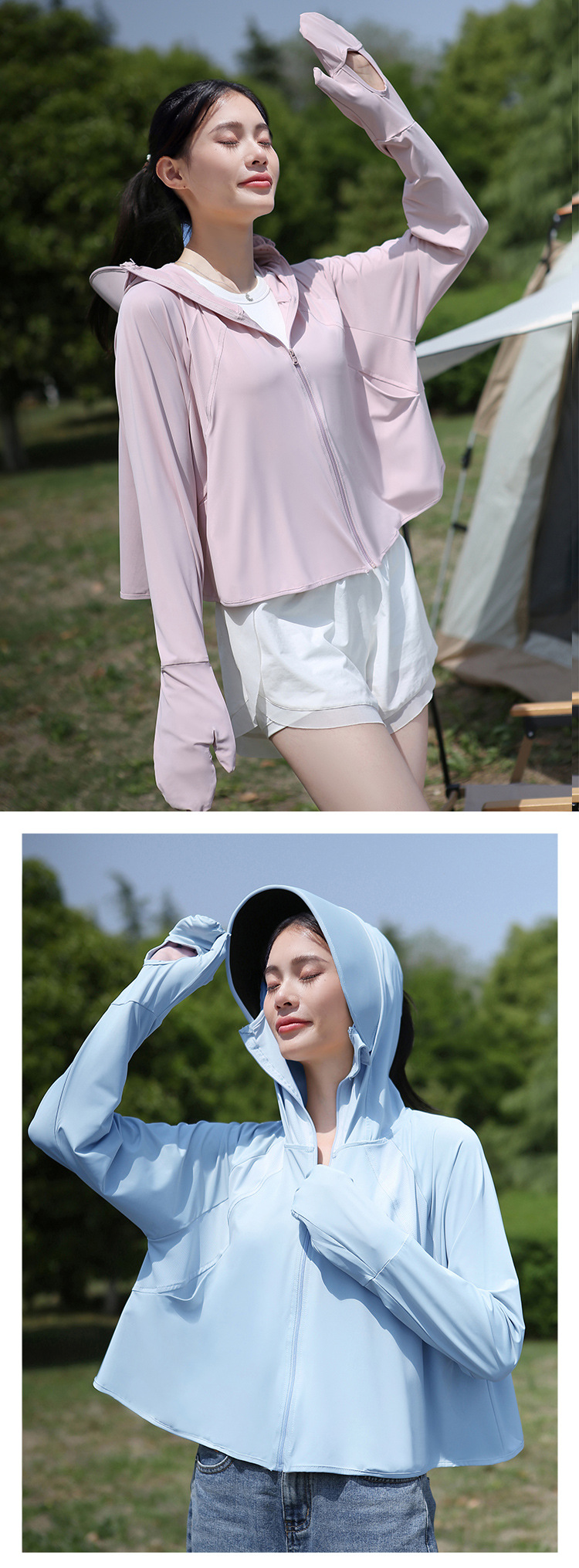 防晒衣女夏季新款黑胶帽檐防紫外线户外骑车透气冰丝护手薄防晒服