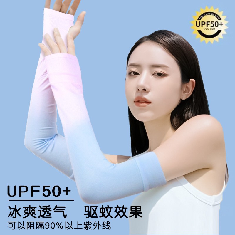 男女士夏季冰丝袖套户外骑行渐变色冰袖护臂驱蚊防晒袖套工厂批发