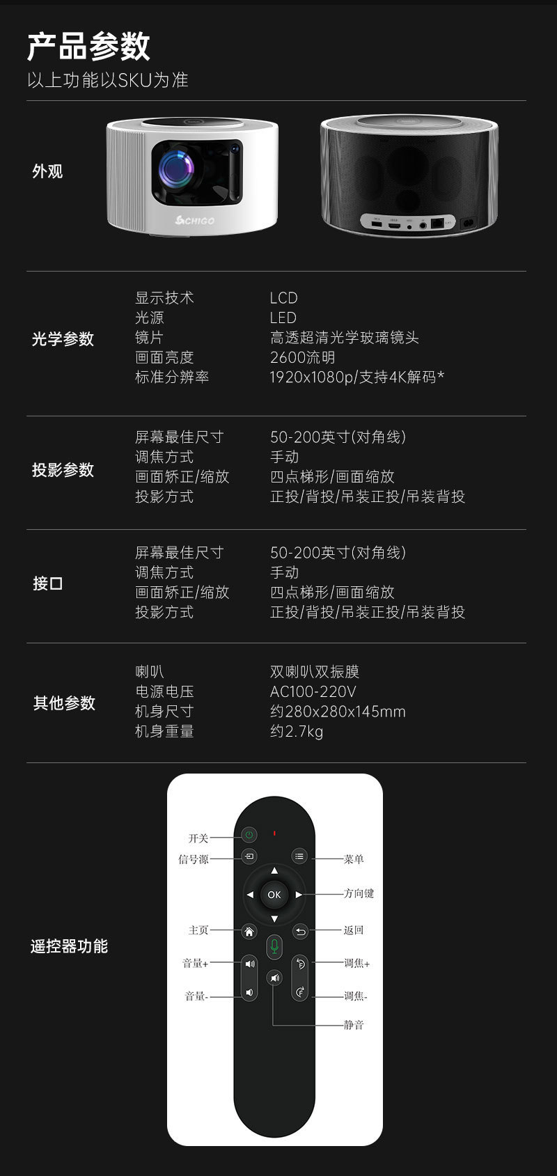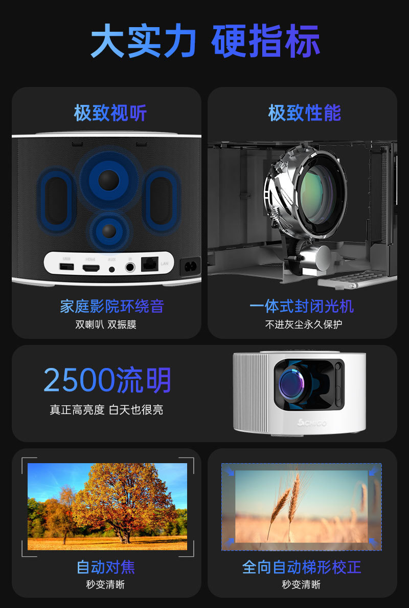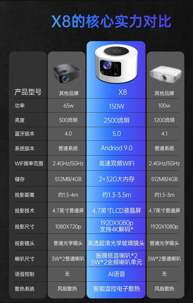 新款密闭式光机投影仪自动智能WIFI高清手机无线投屏X8