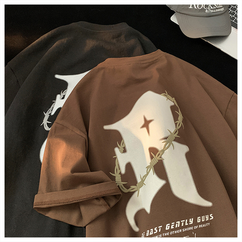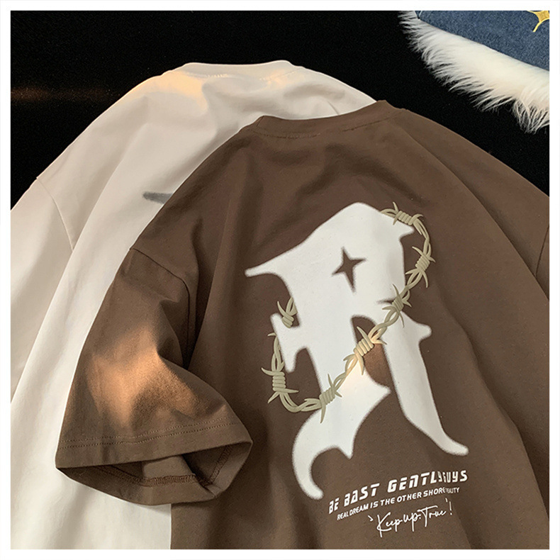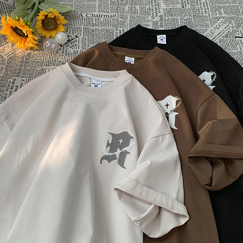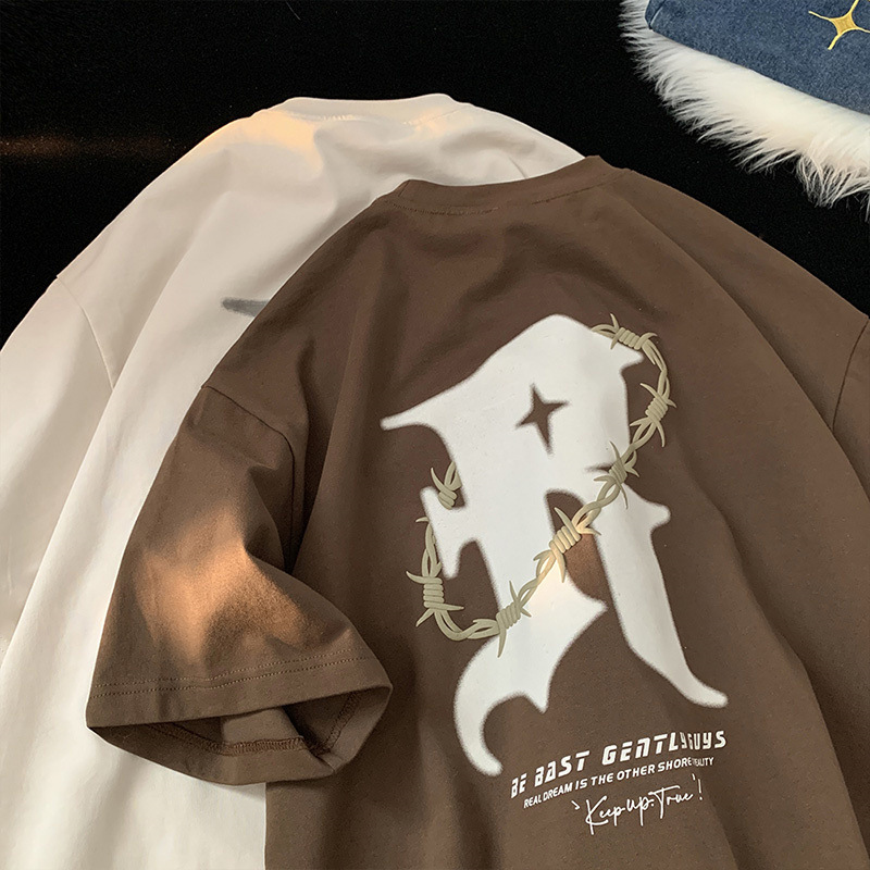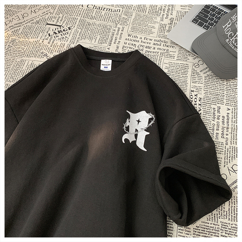 美式复古纯棉t恤男夏季新款设计感小众短袖上衣高街潮牌潮流休闲