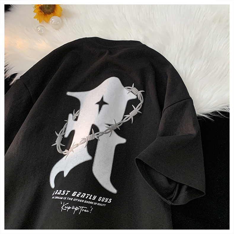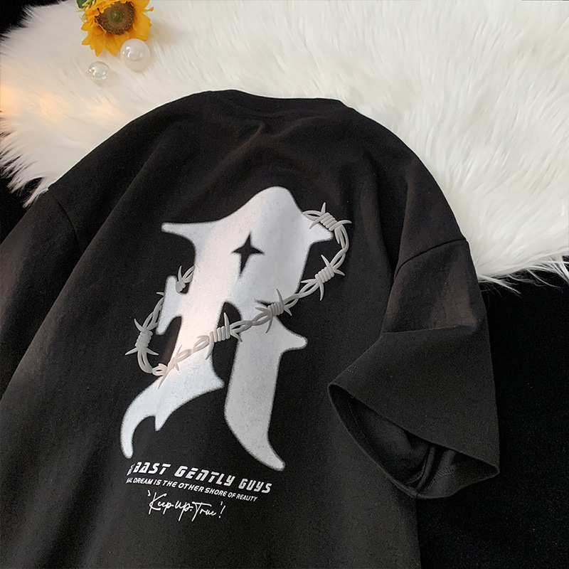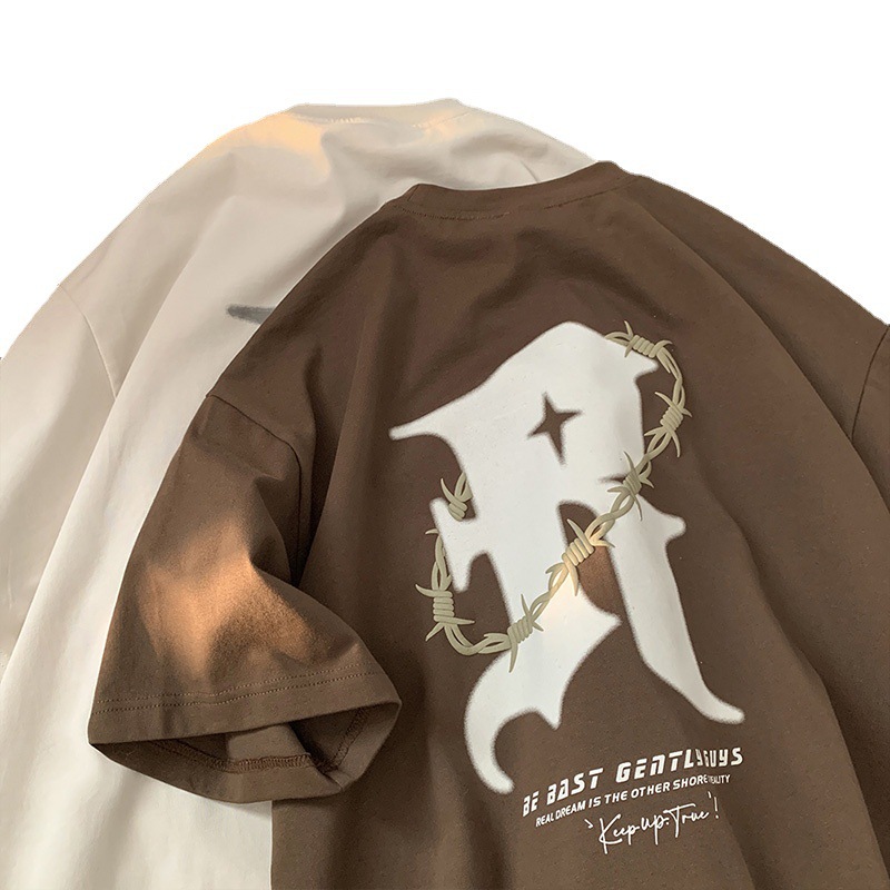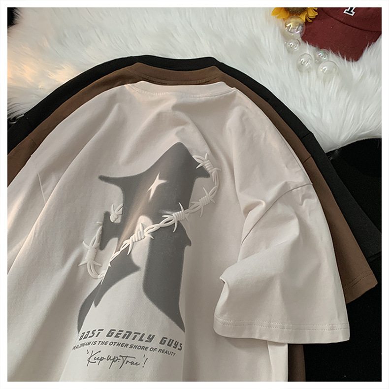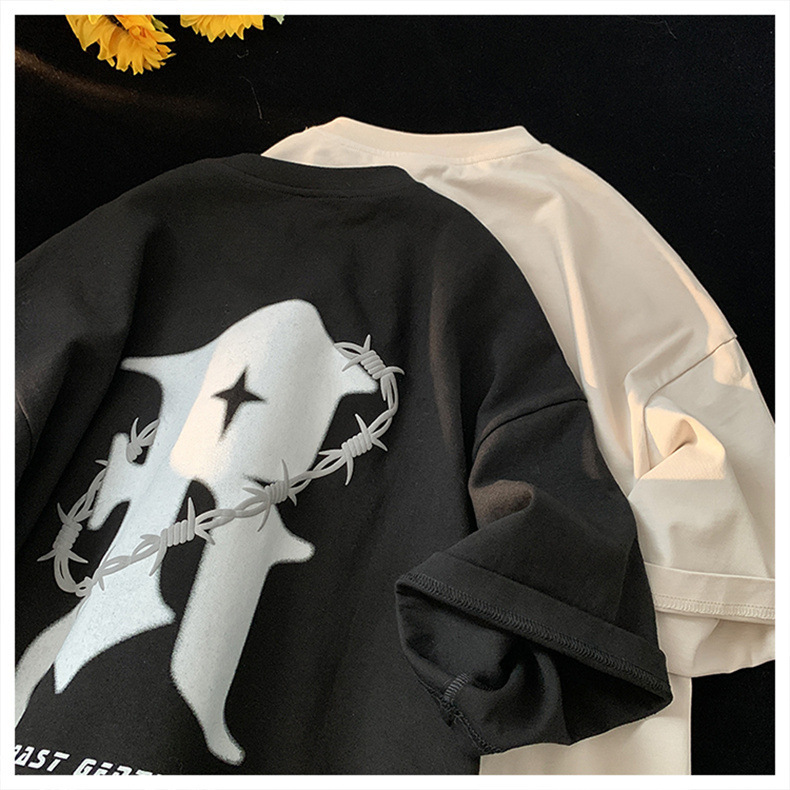 美式复古纯棉t恤男夏季新款设计感小众短袖上衣高街潮牌潮流休闲