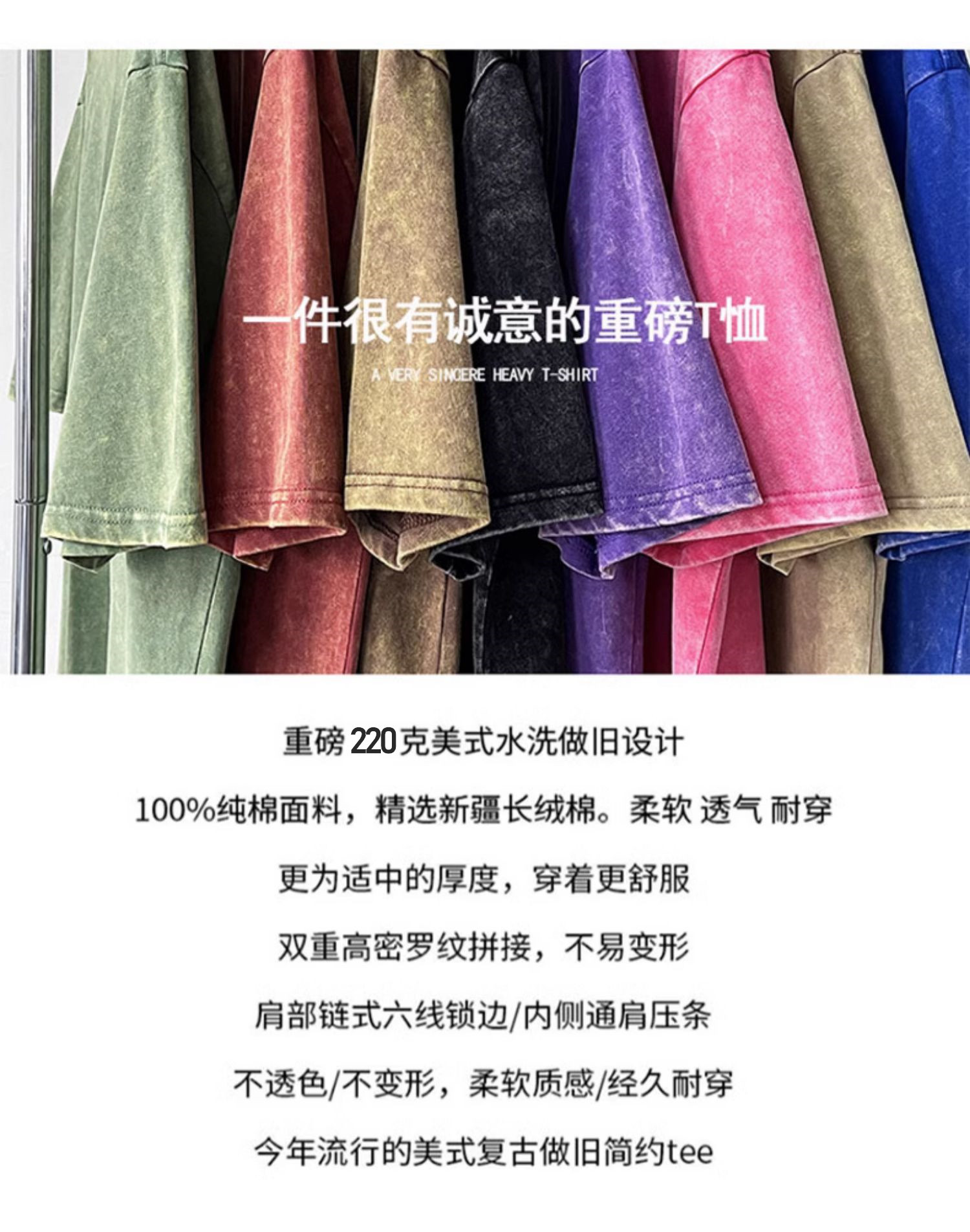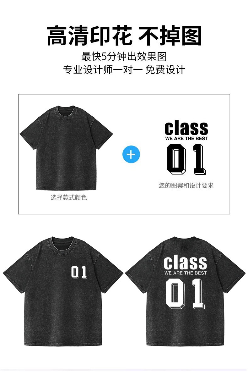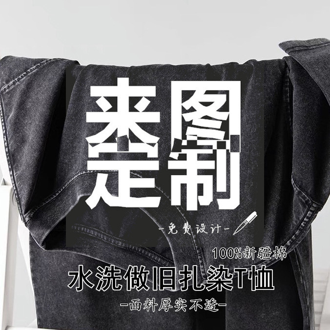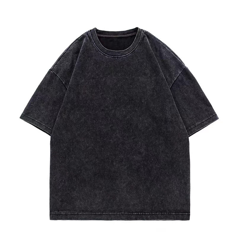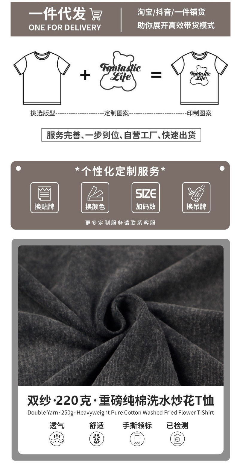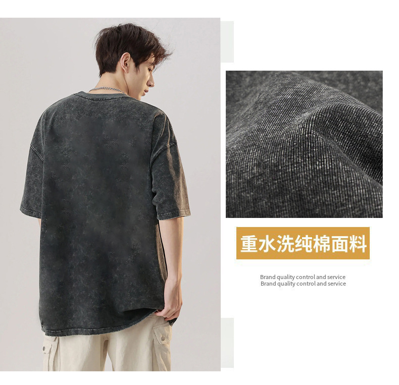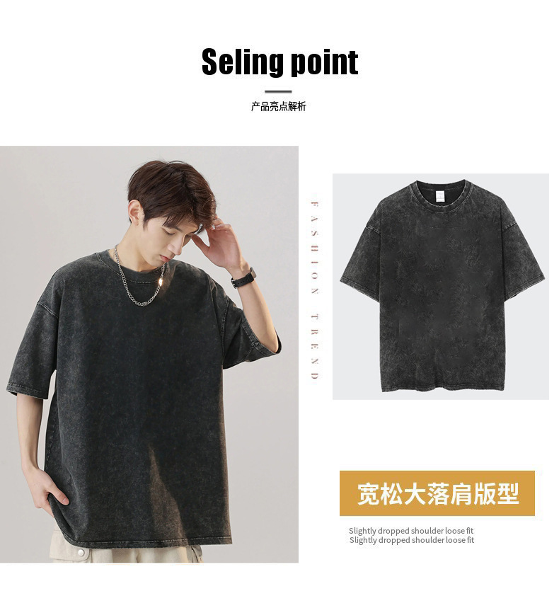 夏季美式复古220g重磅精梳棉短袖t恤男女情侣水洗做旧落肩印花t恤