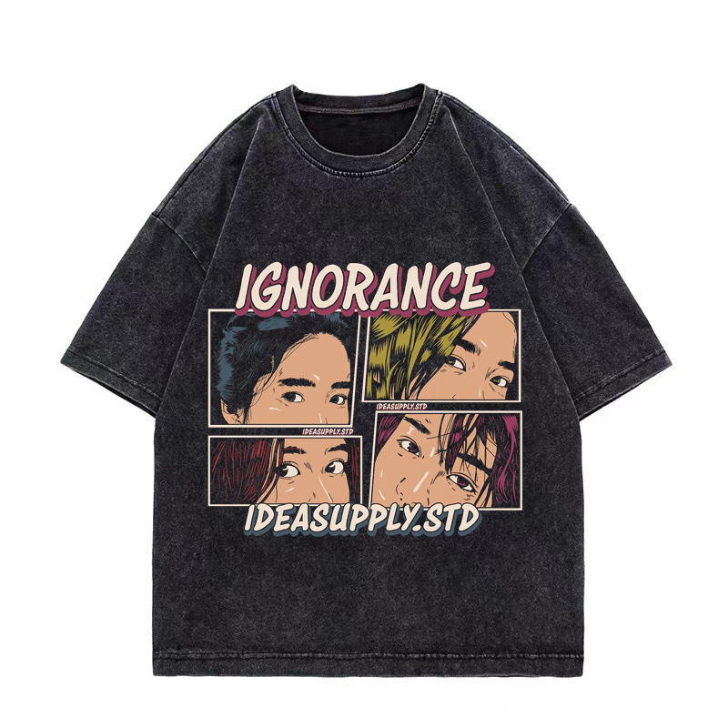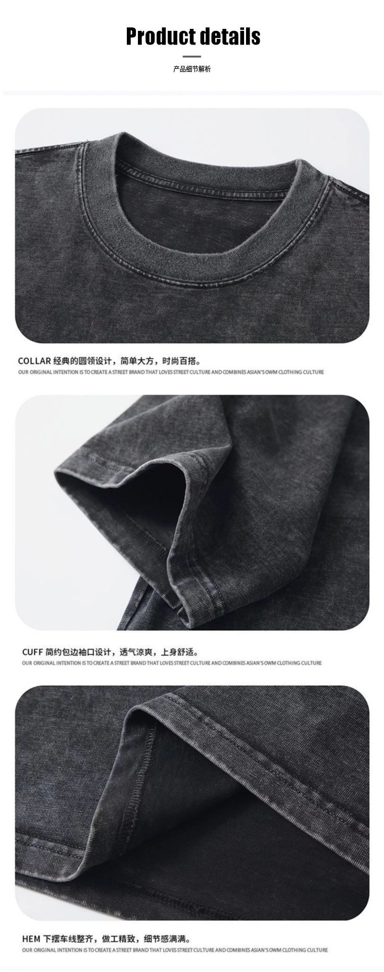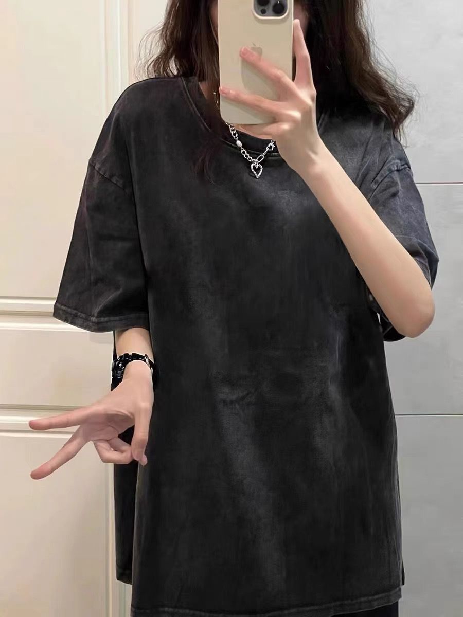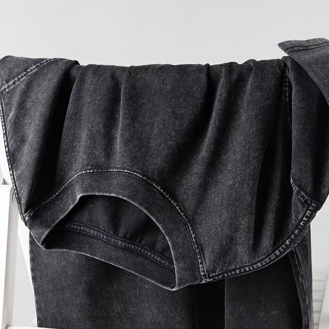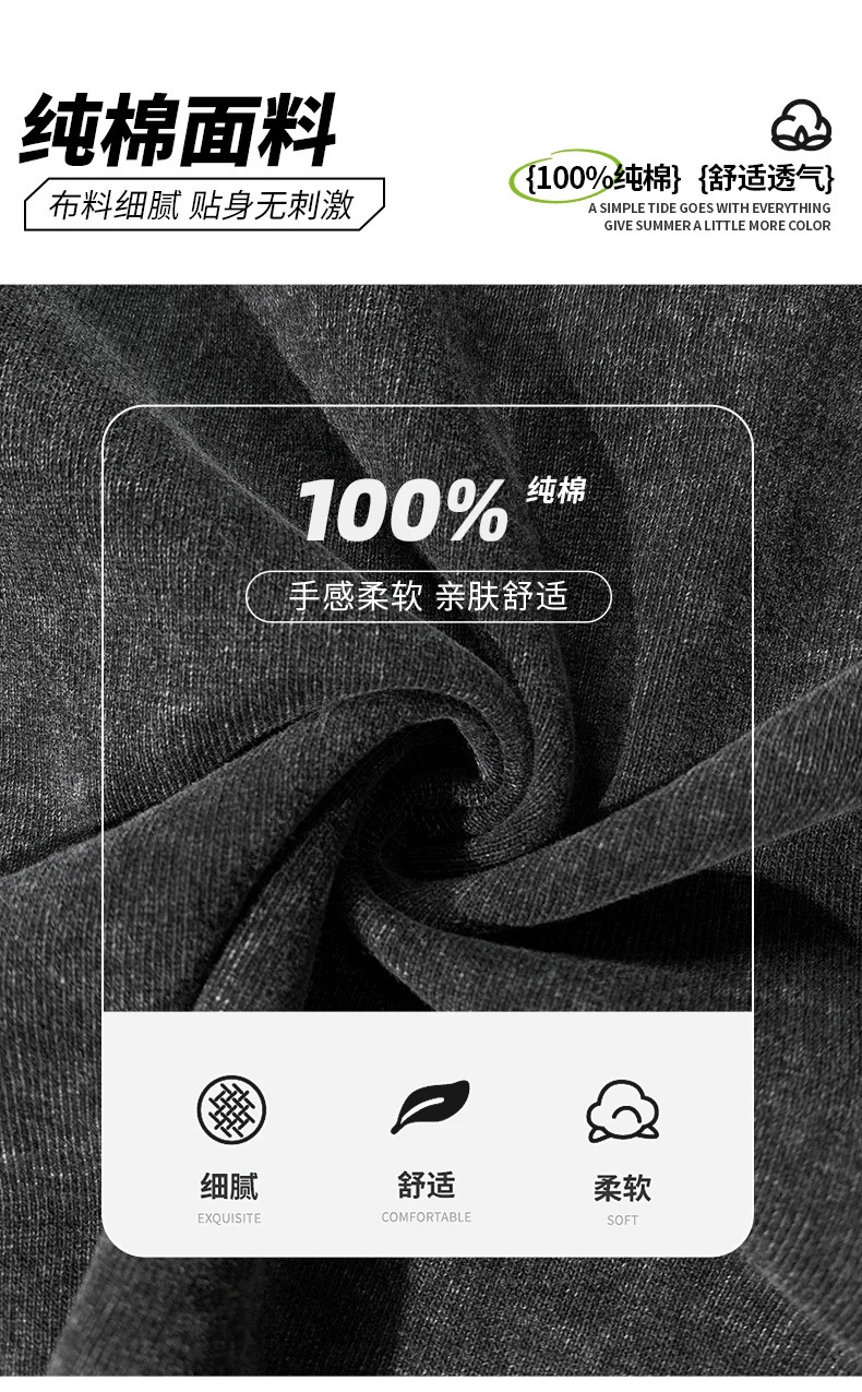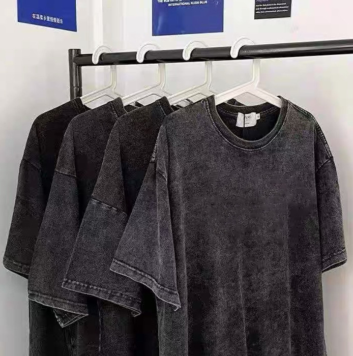夏季美式复古220g重磅精梳棉短袖t恤男女情侣水洗做旧落肩印花t恤