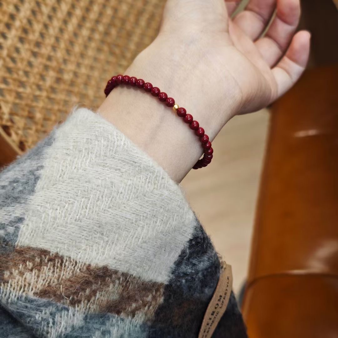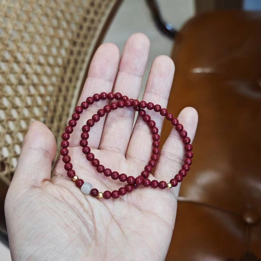 湘西原矿天然朱砂手串S925银和田玉单圈手串本命年辰砂礼物批发