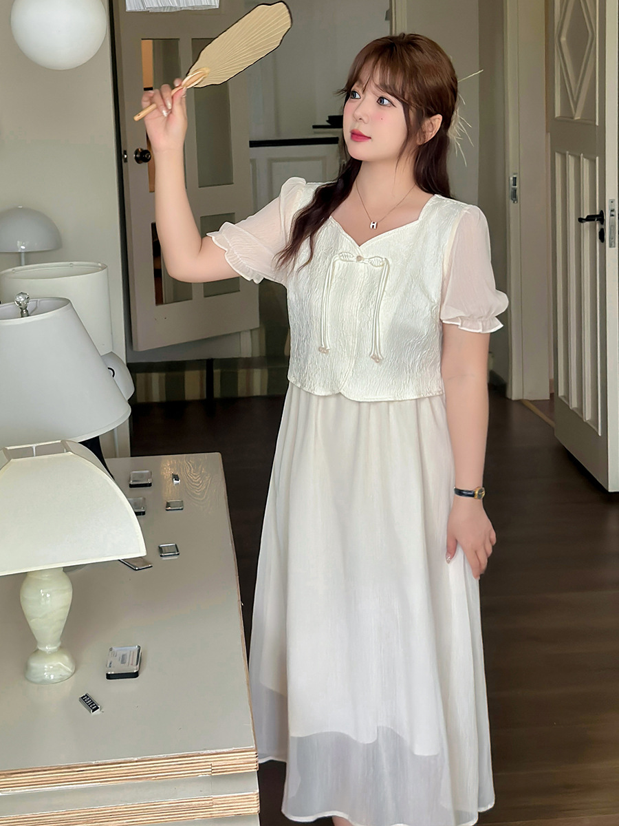 新中式国风复古盘扣连衣裙夏季新款200斤胖妹妹显瘦连衣裙230290