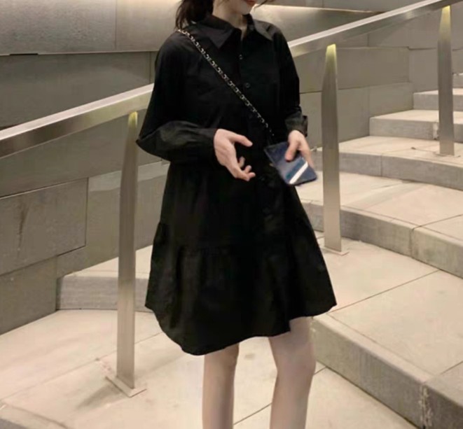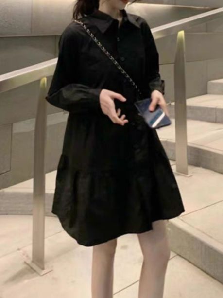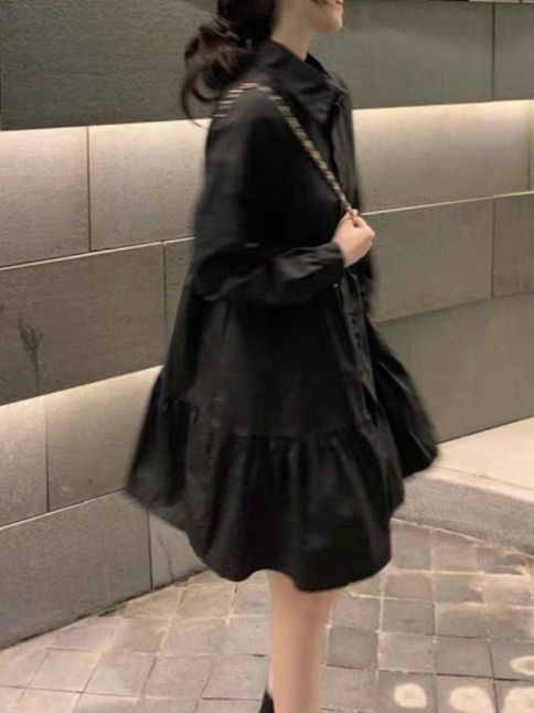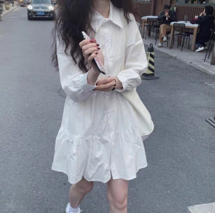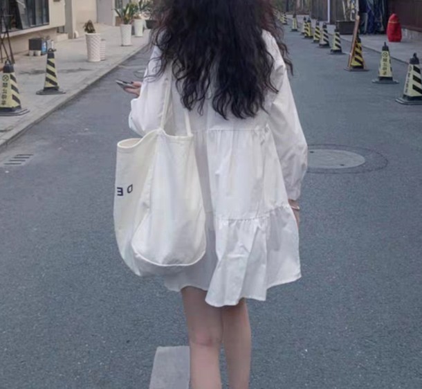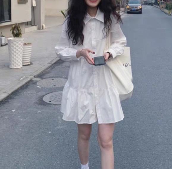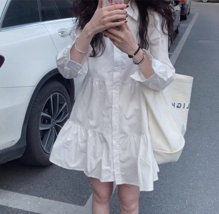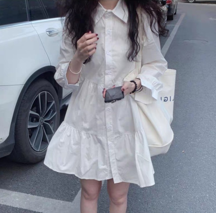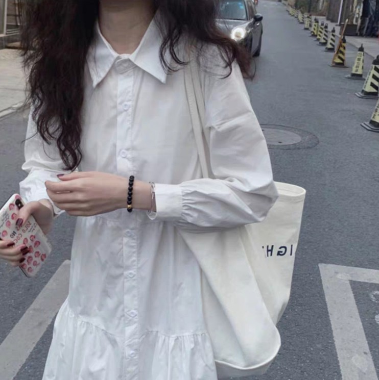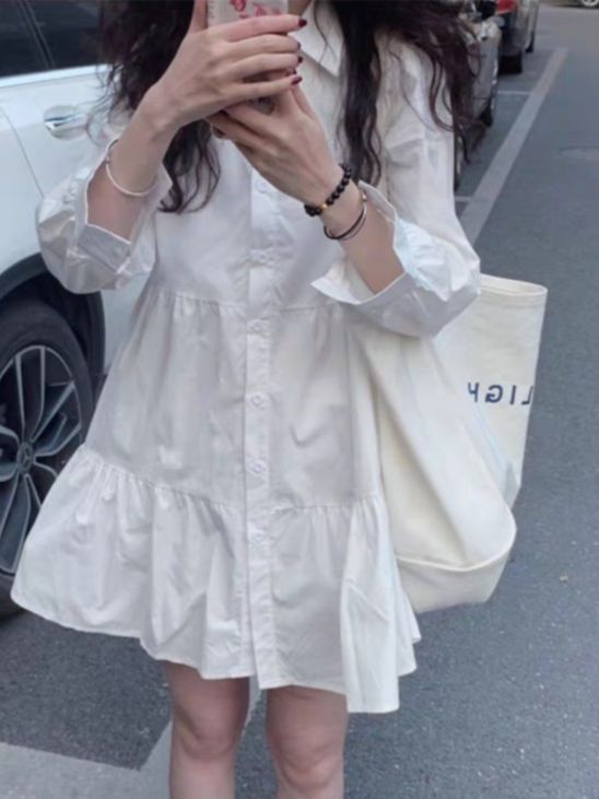 2024春季新款小个子法式白色连衣裙子女设计感小众长袖A字衬衫裙