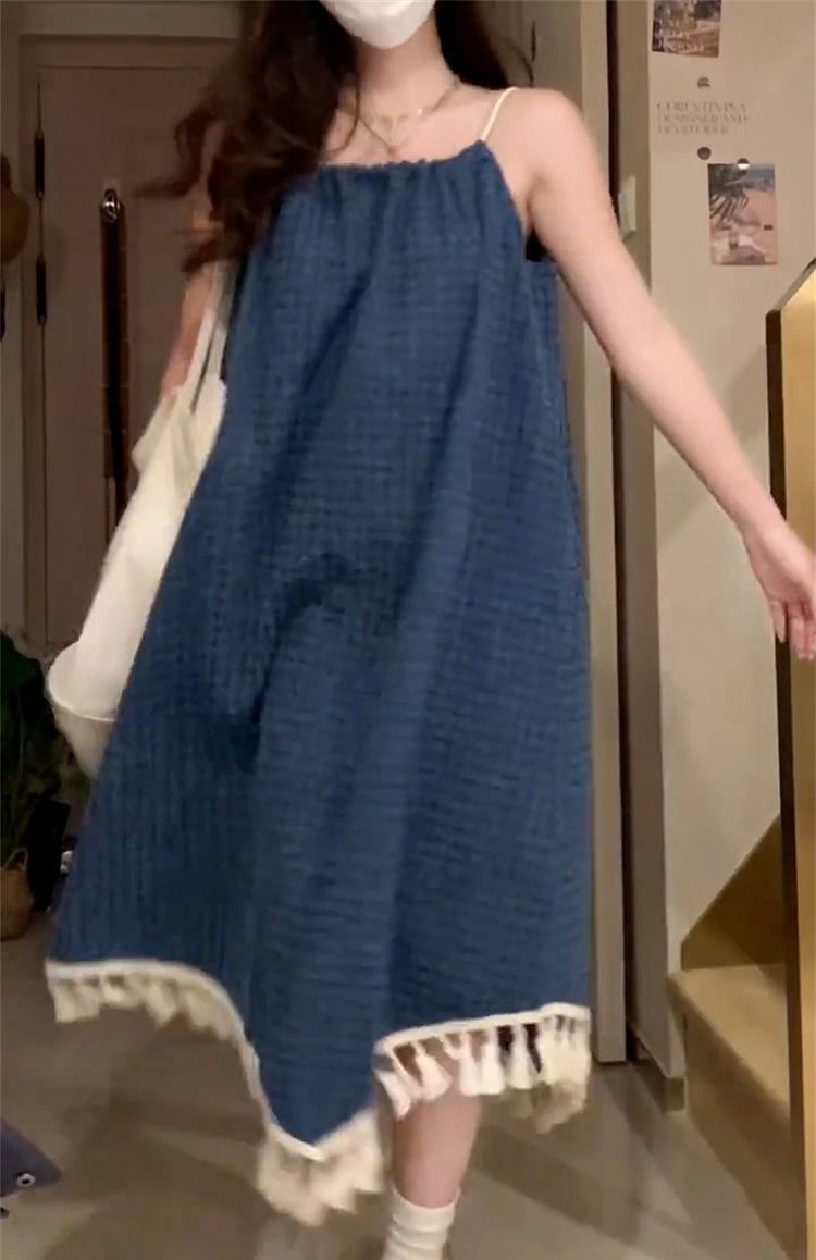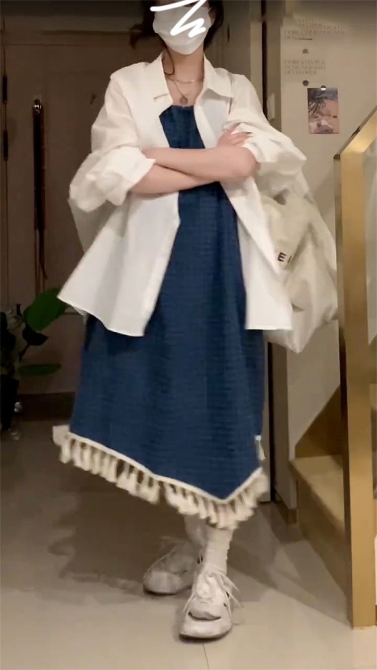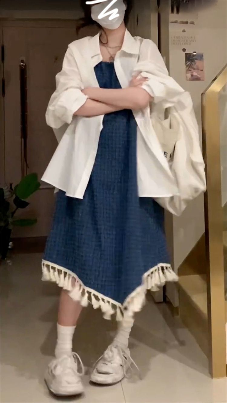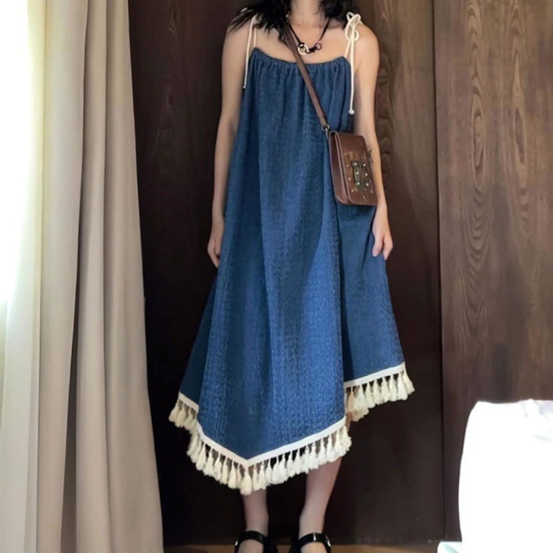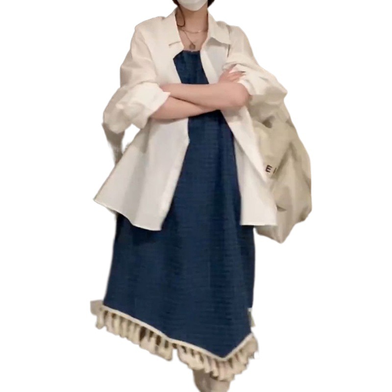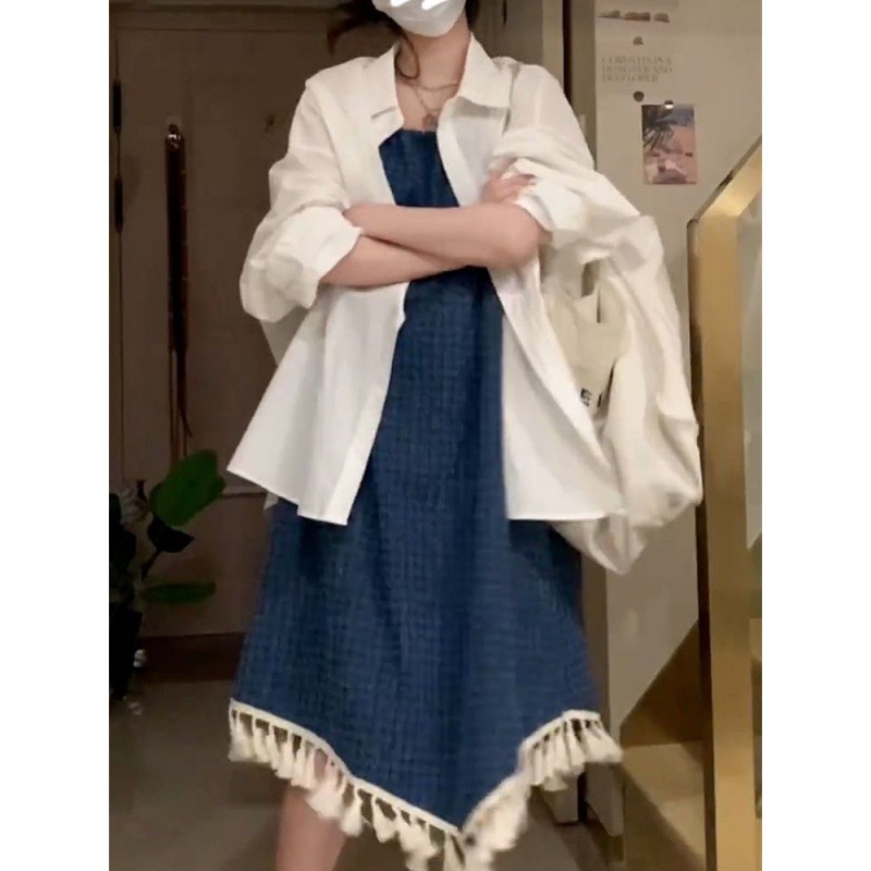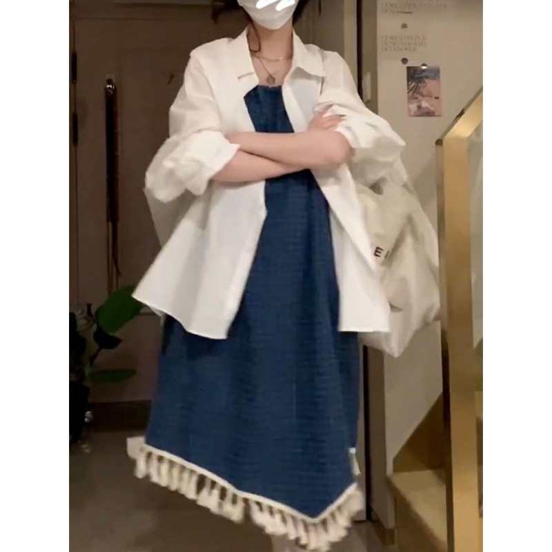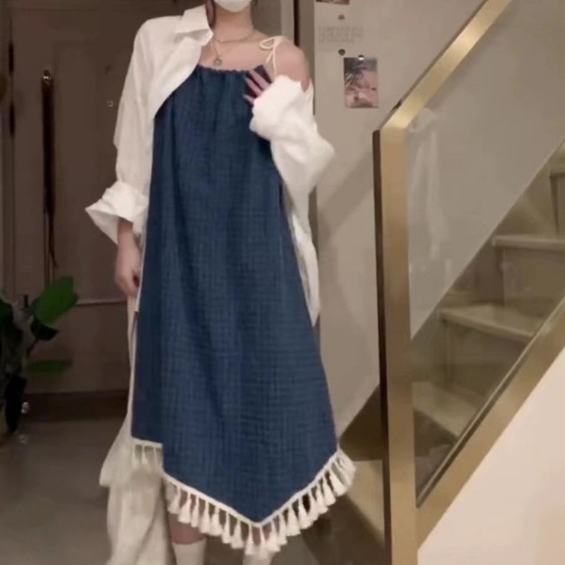 小众设计吊带连衣裙子女2024年新款春季茶歇法式宽松长裙两件套装