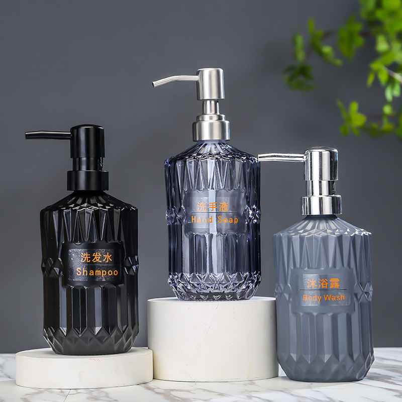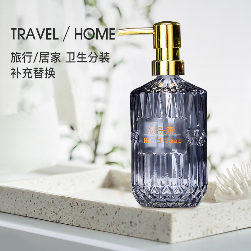 批发玻璃洗手液瓶500ml套装家用酒店卫欲室用品洗发水空瓶