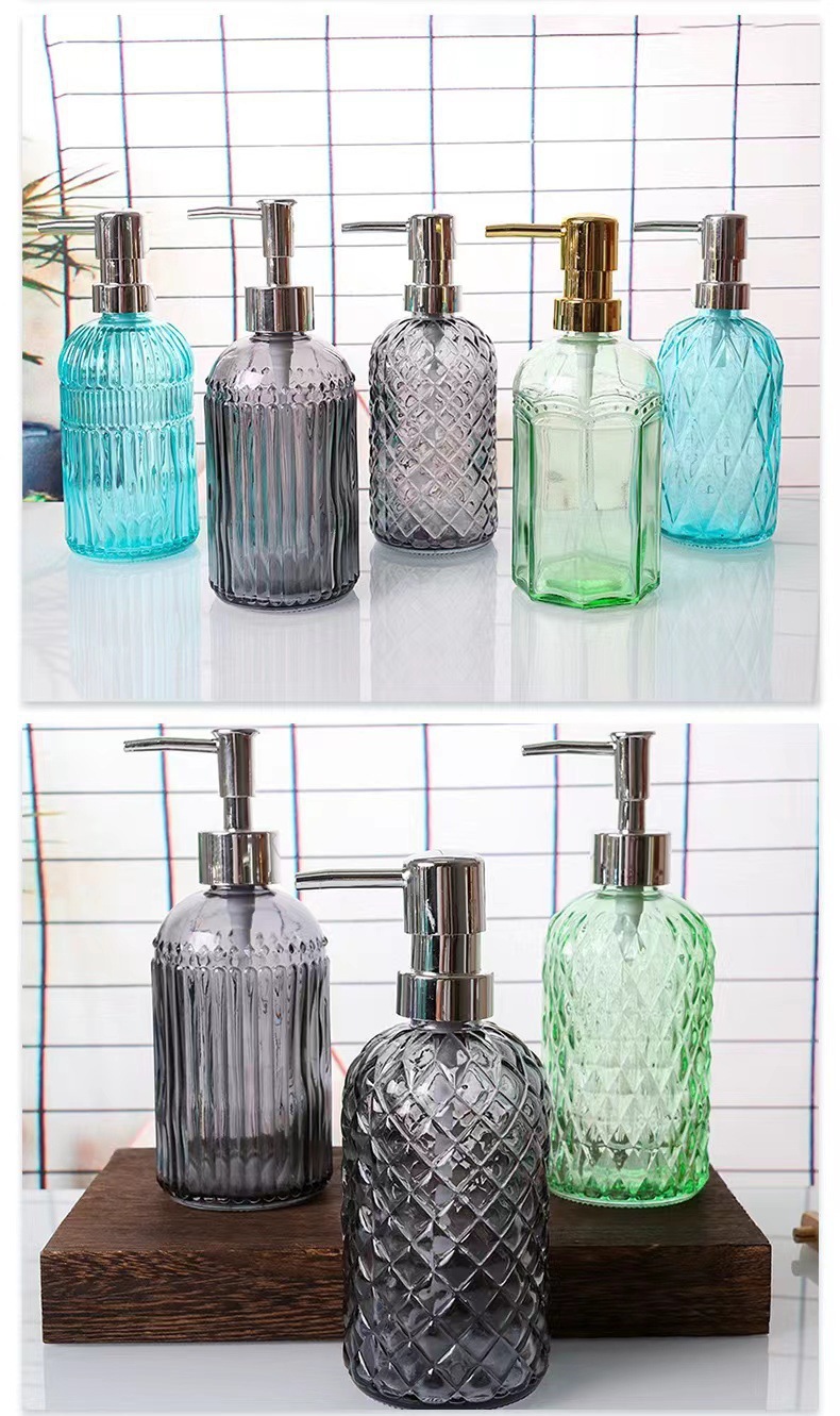按压洗手液瓶400ml小菱形玻璃皂液瓶时尚沐浴露瓶洗发水分装瓶