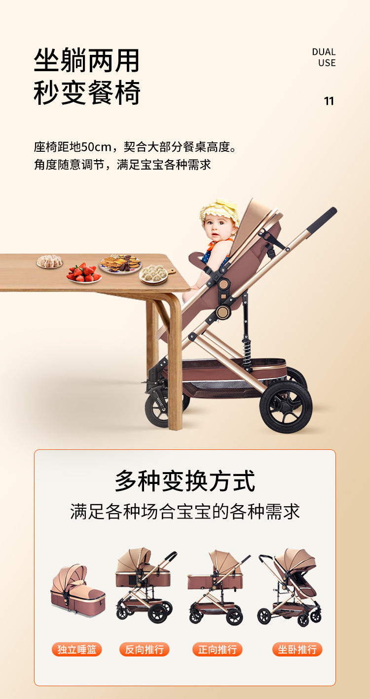 厂家批发避震四季双向宝宝折叠睡篮手推车新生儿轻便婴儿推车