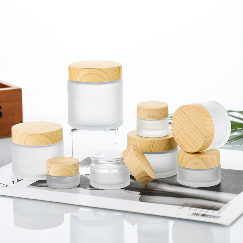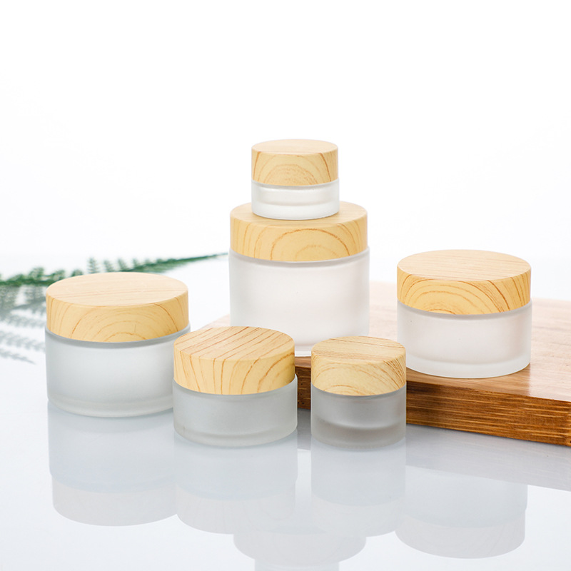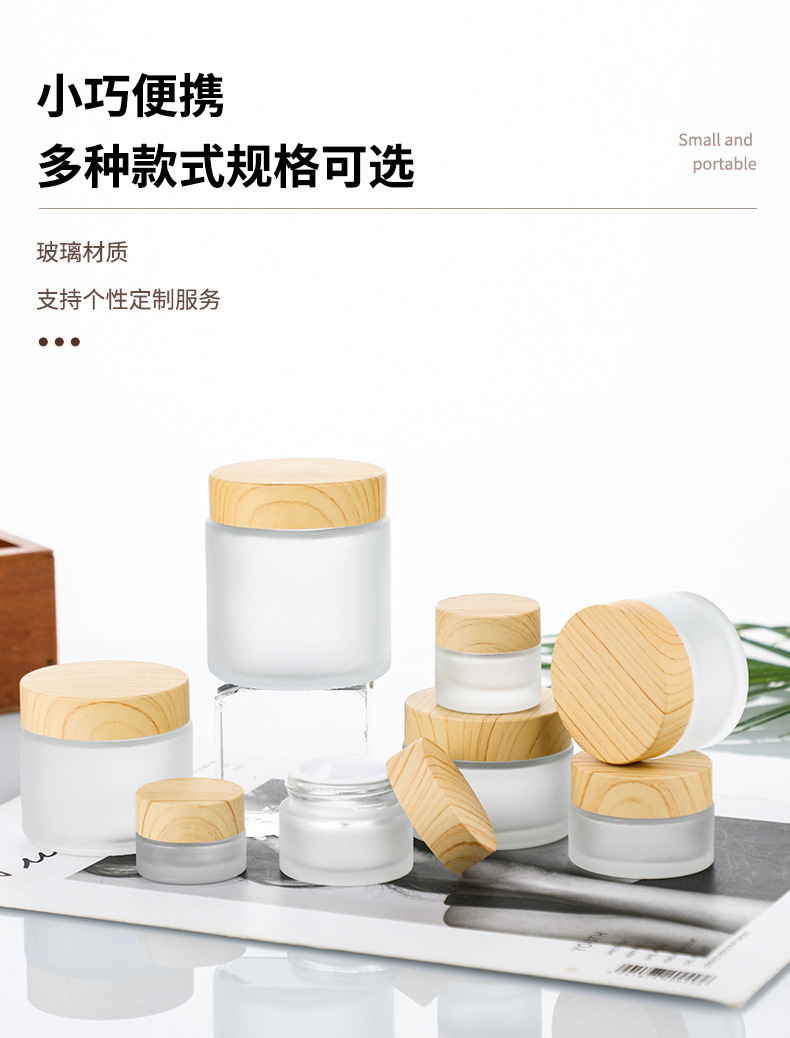 木纹盖蒙砂膏霜瓶20g30g化妆品玻璃面霜瓶子15g护肤品眼霜分装瓶