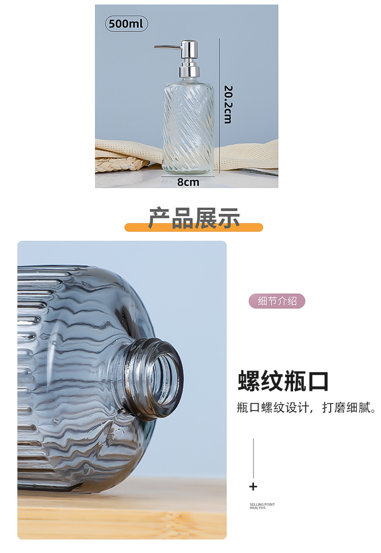 压泵洗发水玻璃洗手液瓶护发素分装瓶欧式沐浴露500ml化妆品瓶
