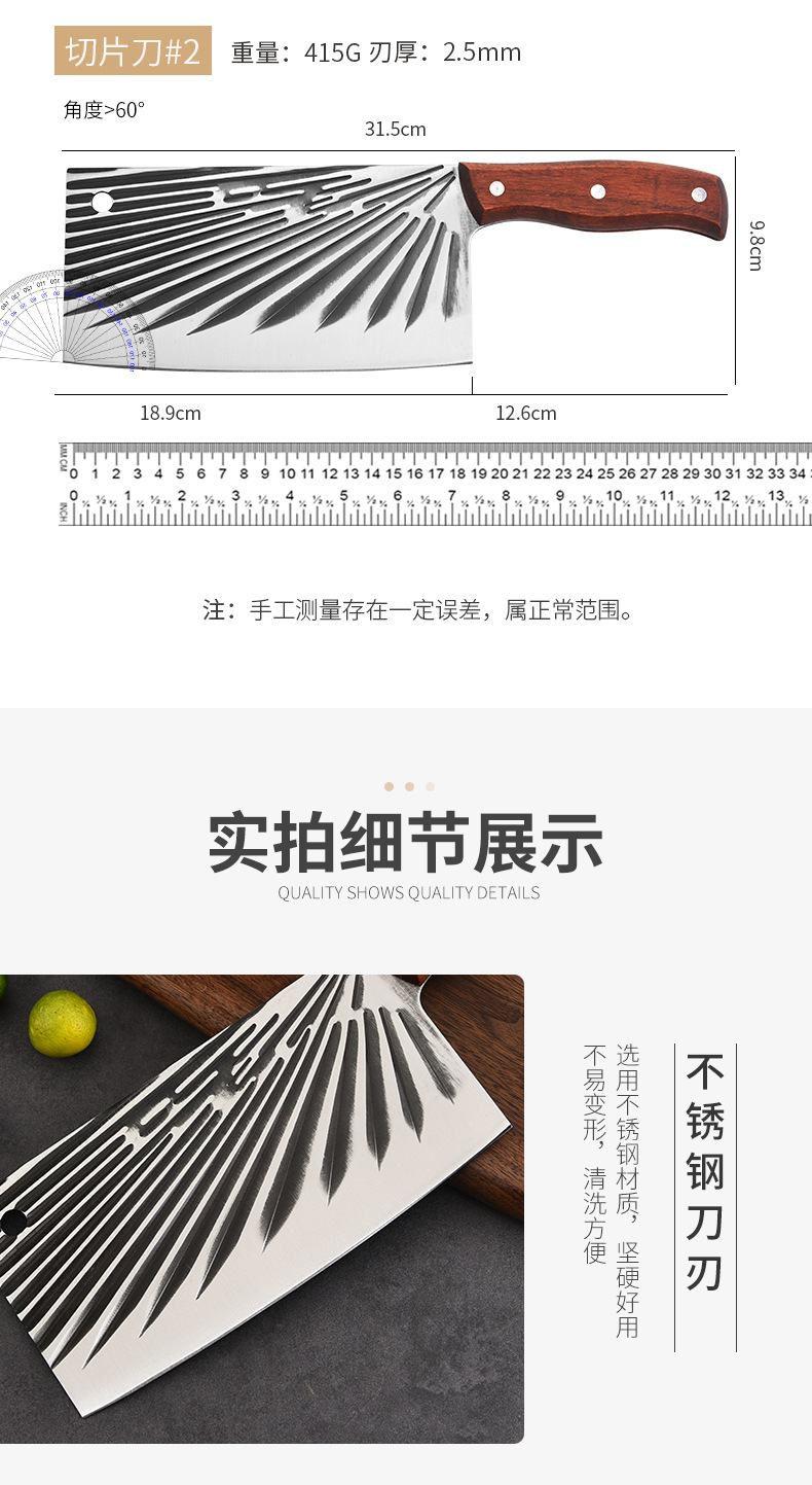 广东阳江厂家削铁如泥锻打菜刀纯手工菜刀家用厨房砍骨刀切片刀具