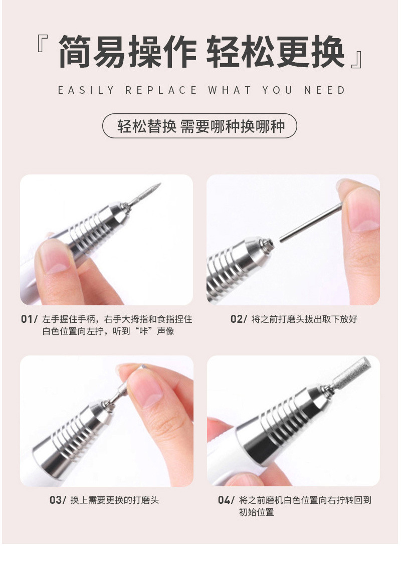 704美甲打磨机 电动美甲打磨机 便携多功能卸甲抛光雕刻去死皮
