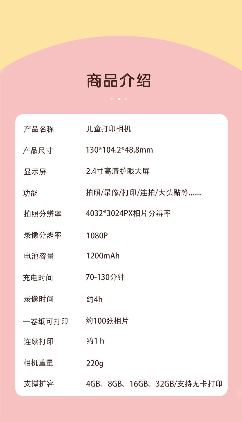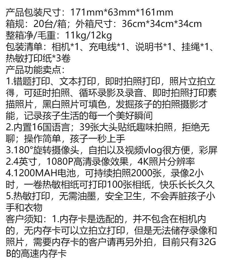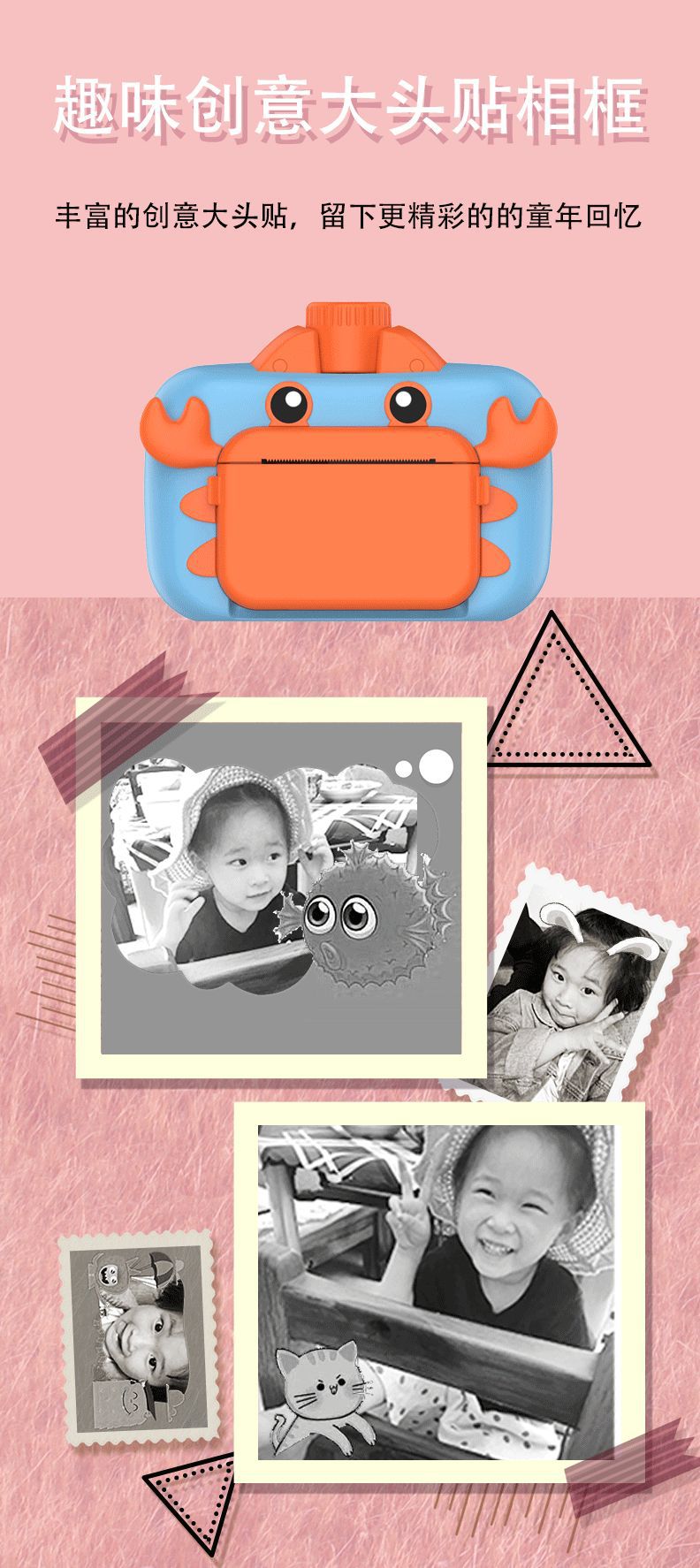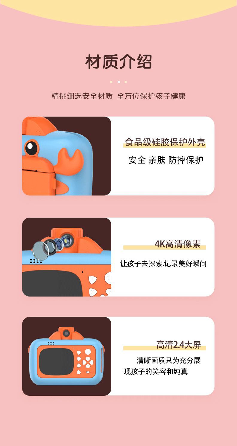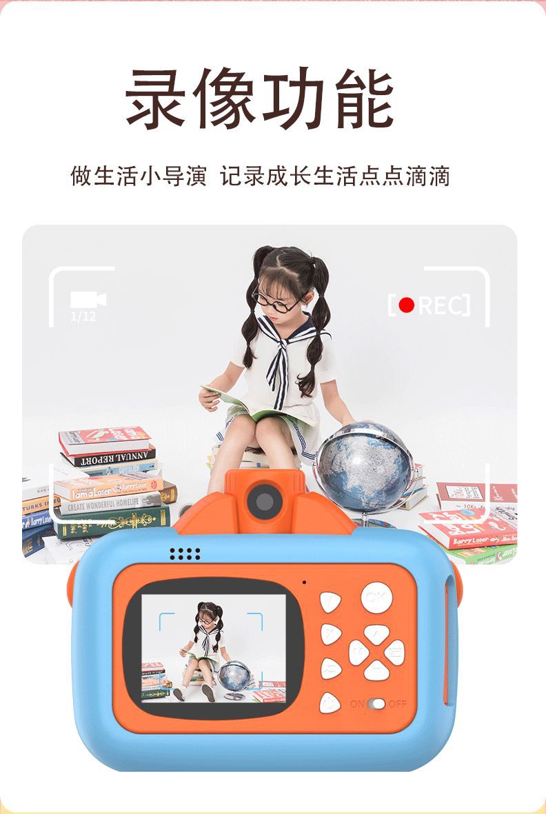 新款儿童拍立得相机可打印照相机高清录像漫画单反宝宝生日礼物