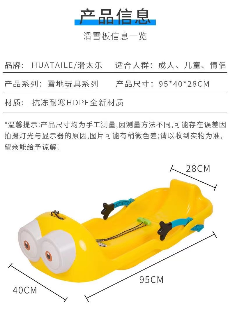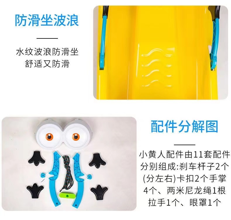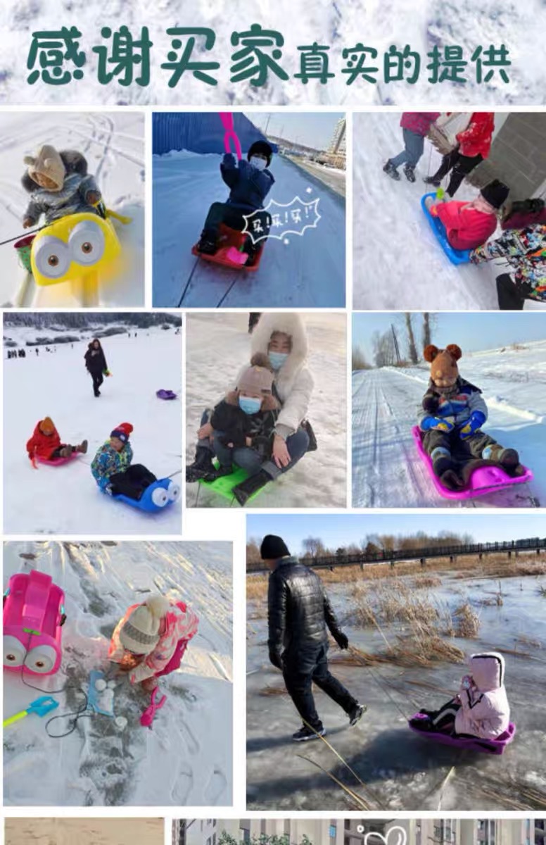 儿童成人双人滑雪板加厚滑草板滑沙板雪橇车划板小孩爬犁带刹车