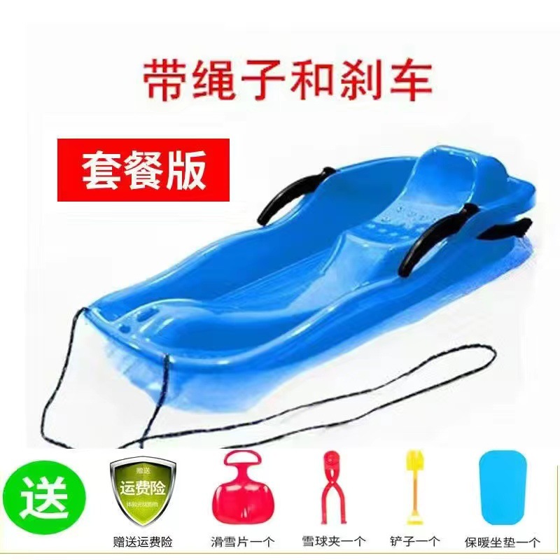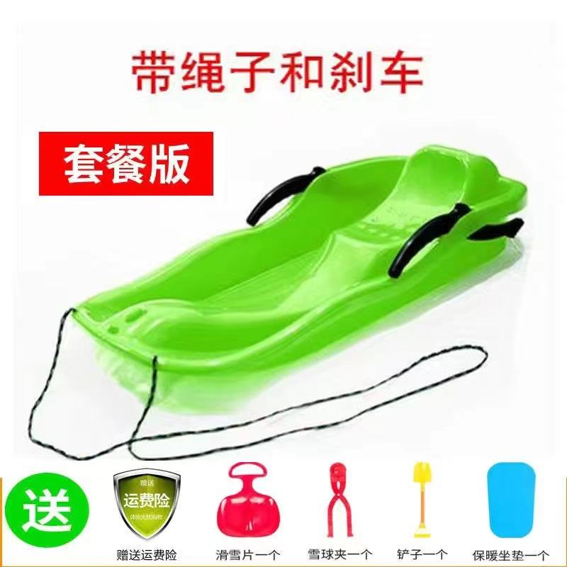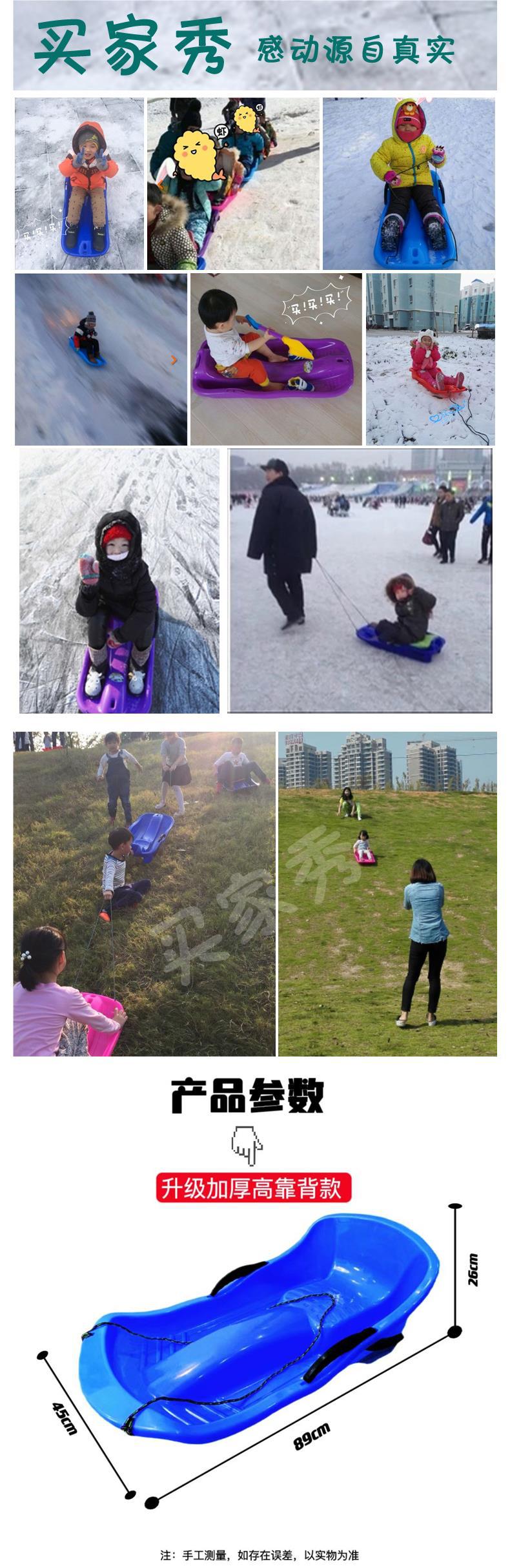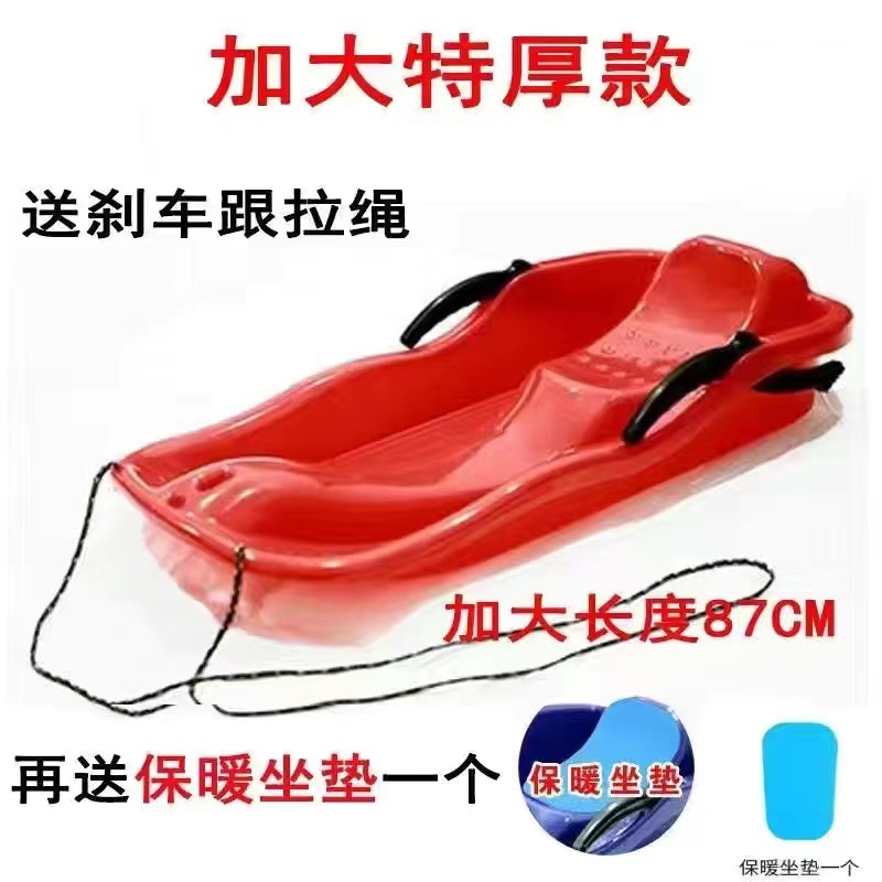 特厚加厚双人滑雪板成人儿童亲子滑草板地片雪橇爬犁滑沙板带刹车