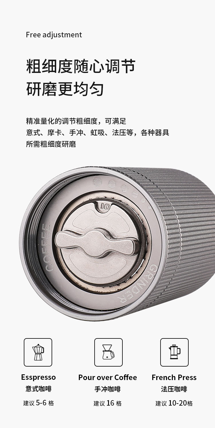 手摇咖啡机磨豆机锯齿全能芯不锈钢六星咖啡研磨器粗细可调手磨器