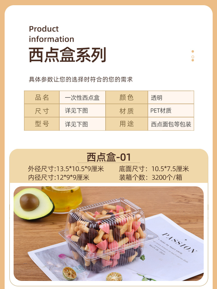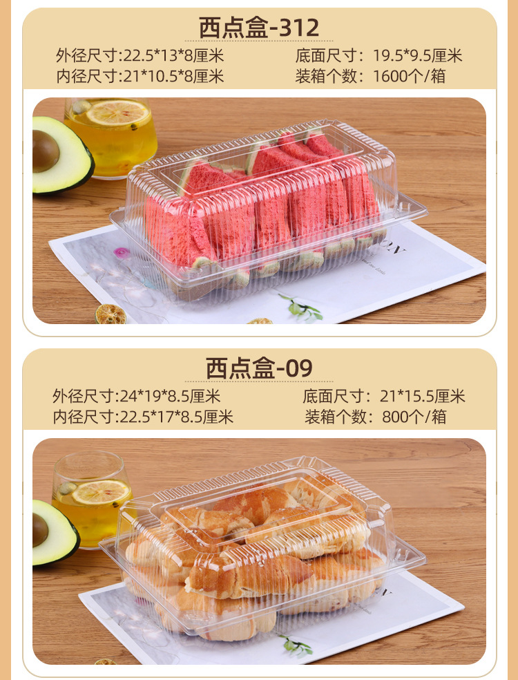透明塑料西点包装盒多规格面包饼干防尘盒烘焙店西点一次性打包盒