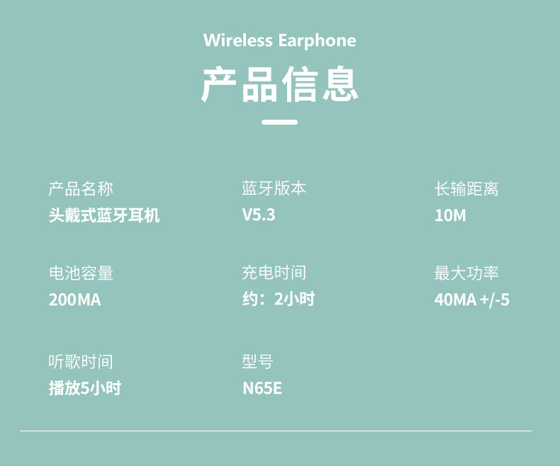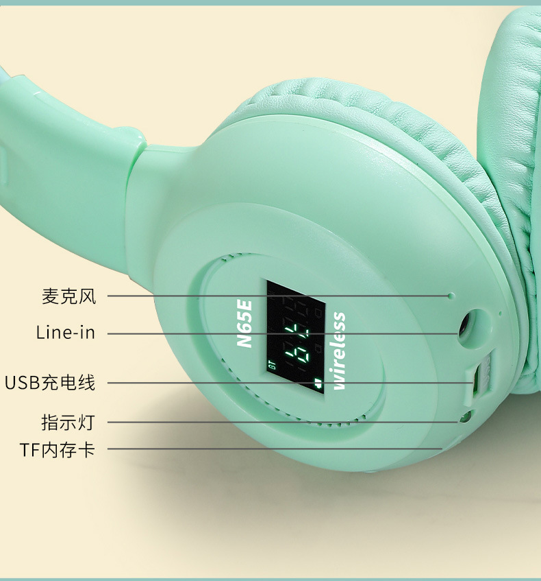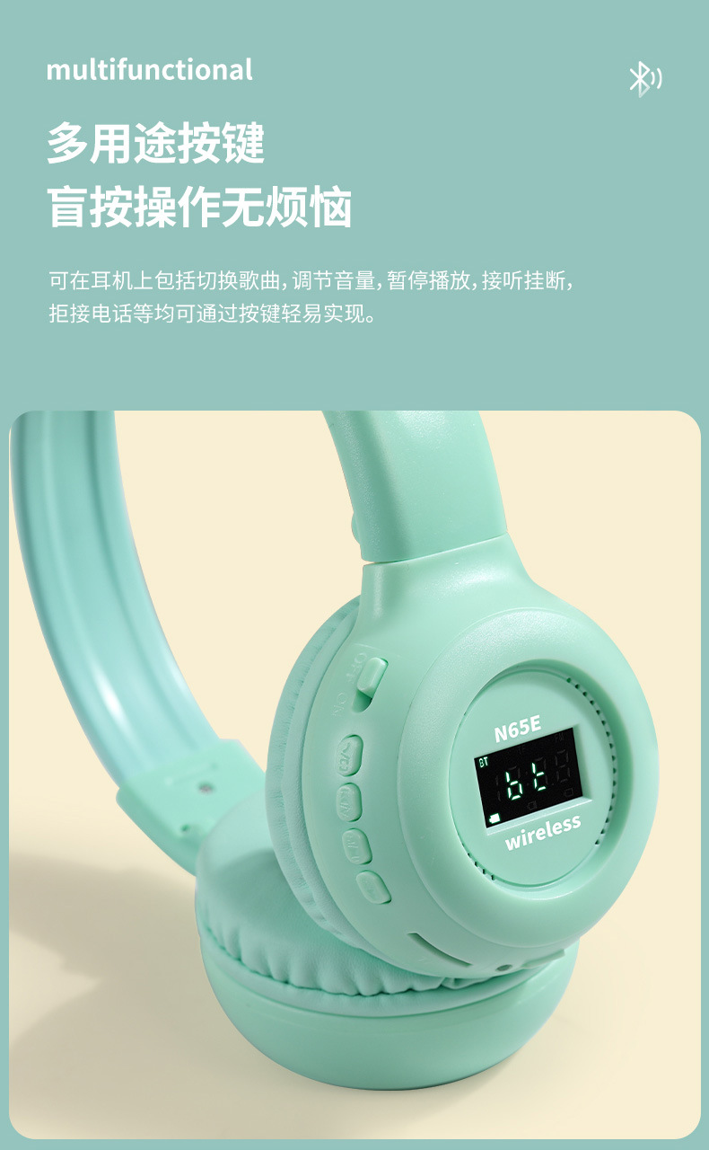新款N65E头戴式蓝牙耳机跨境爆款无线运动折叠蓝牙插卡N65耳机厂