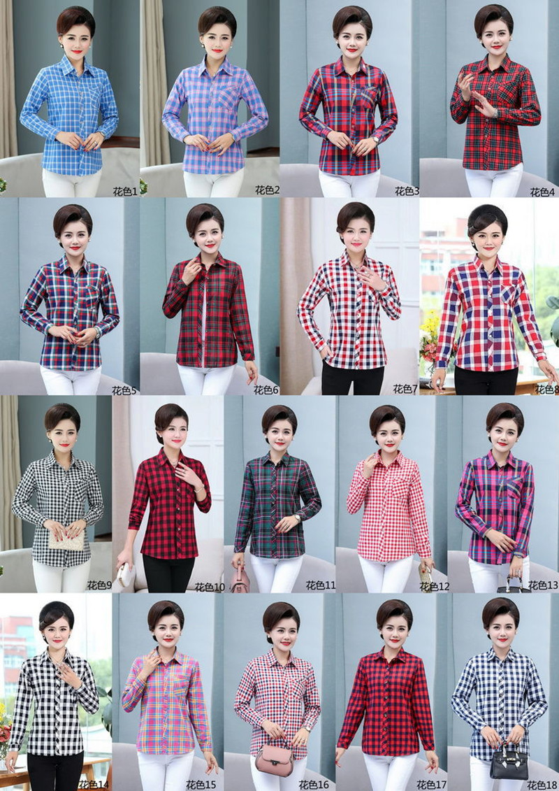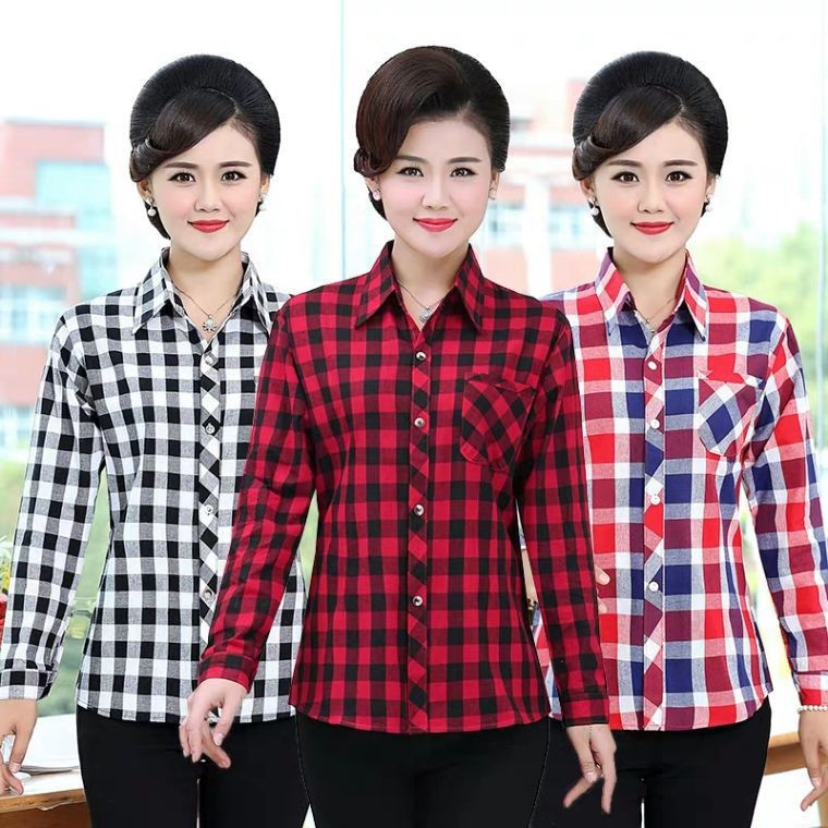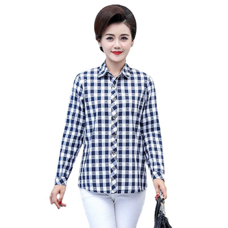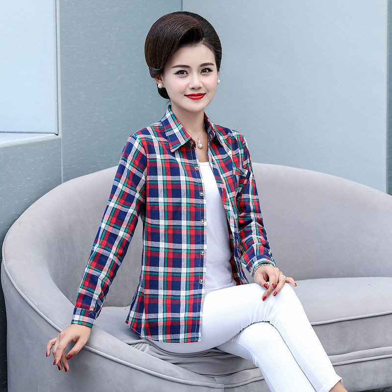 春秋中老年女装长袖衬衫女夏装格子衬衣女士小个子上衣寸衫妈妈装