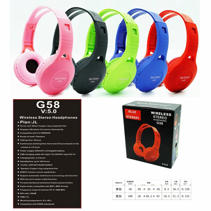 G58无线头戴式立体声蓝牙插卡耳机中性运动耳机无线头戴式礼品单