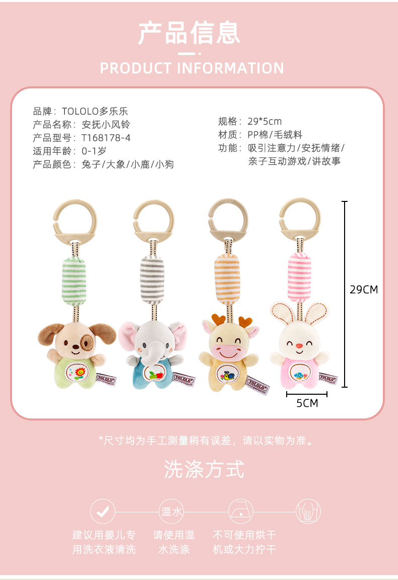 浅彩色风铃四款有机棉车载风铃挂件新生儿推车宝宝床挂安抚玩具