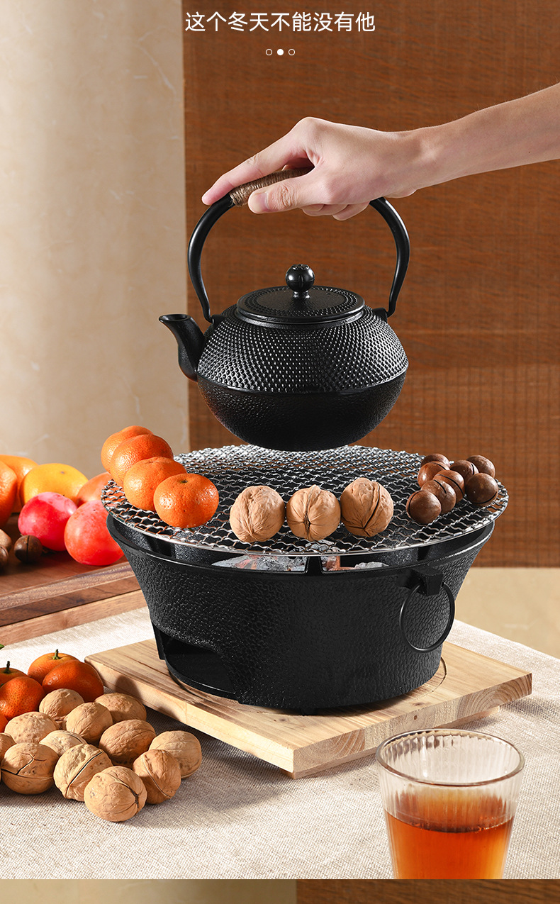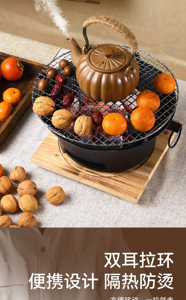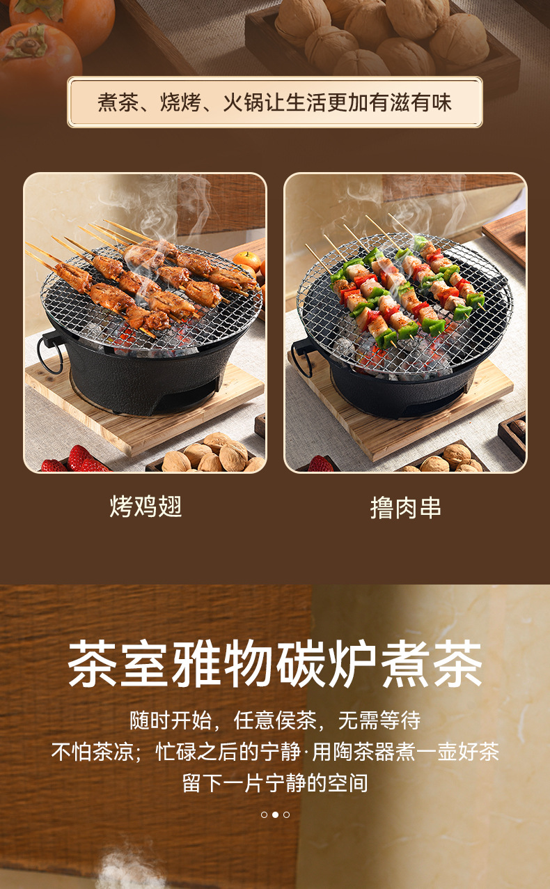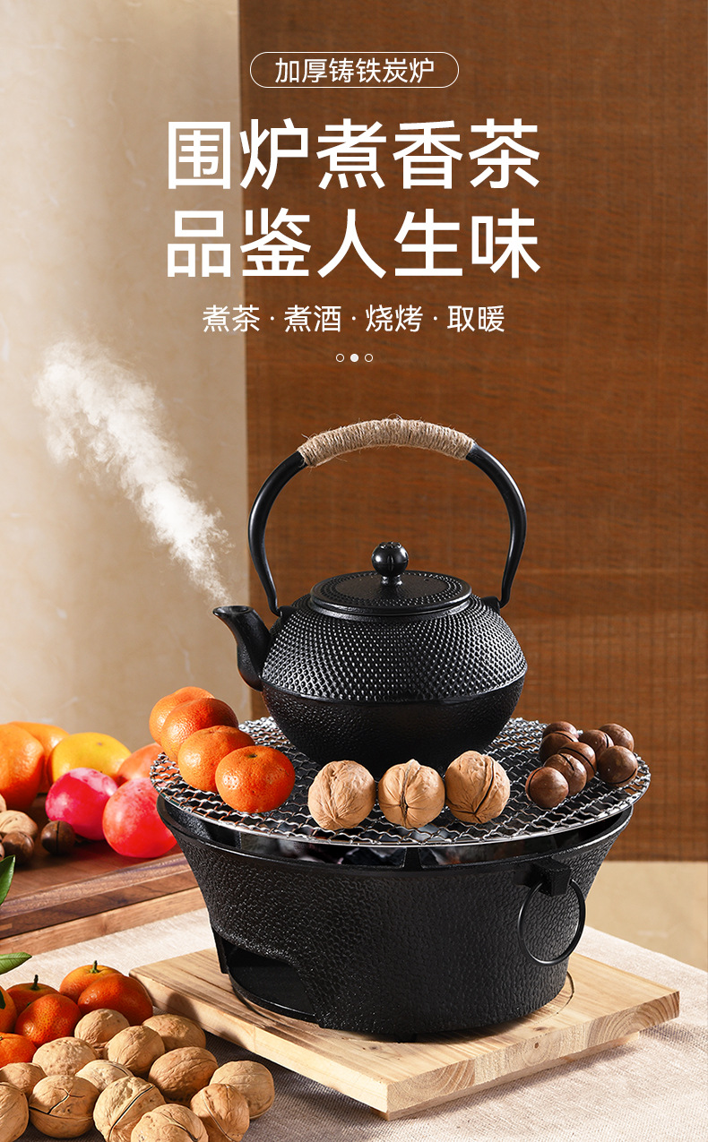 庭院围炉煮茶全套装炭火炉淄博烧烤炉户外便携家用碳烤肉铸铁炉子