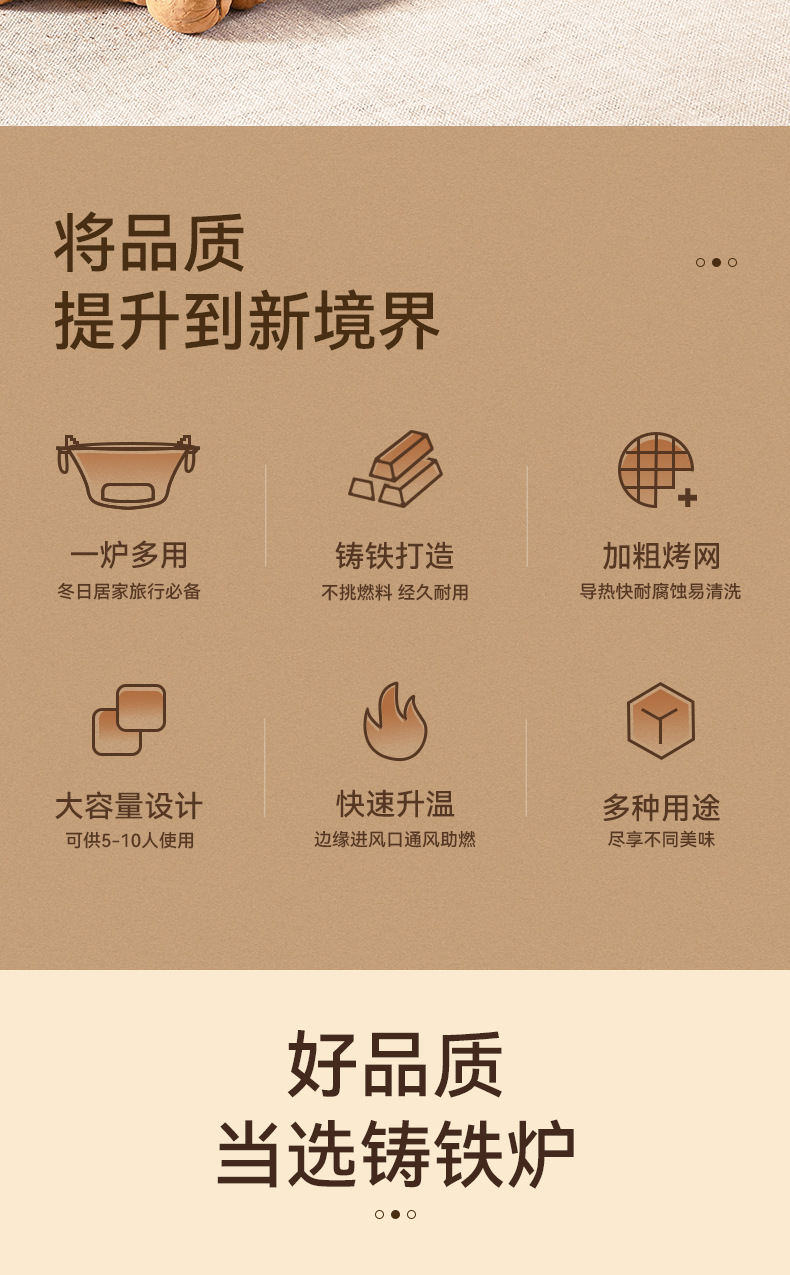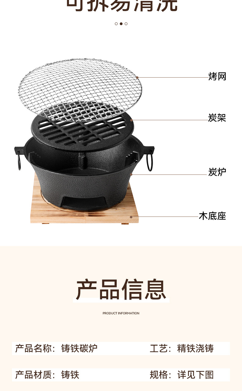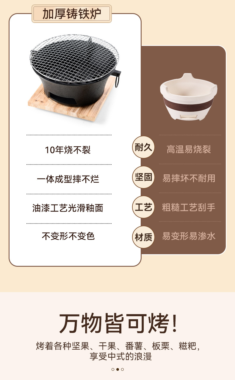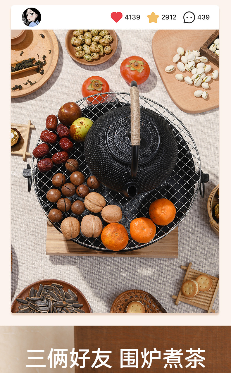 庭院围炉煮茶全套装炭火炉淄博烧烤炉户外便携家用碳烤肉铸铁炉子