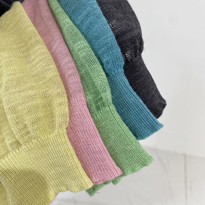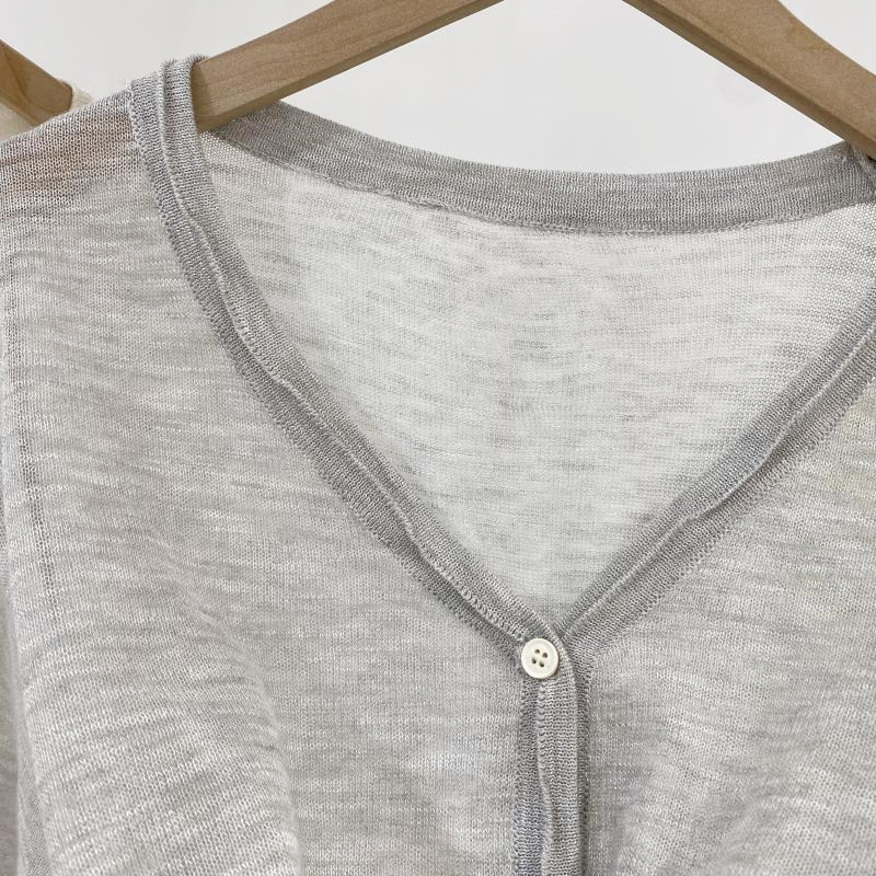 韩系!九色任选~夏日薄款冰丝亚麻防晒V领针织开衫女显瘦空调衫