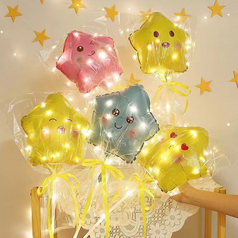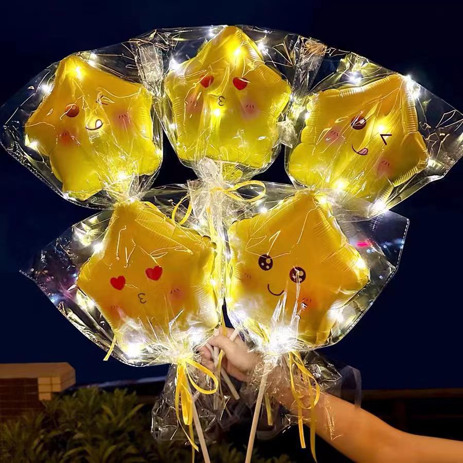 新款爆款地推星星气球材料包发光铝膜气球材料包全套网红摆摊气球