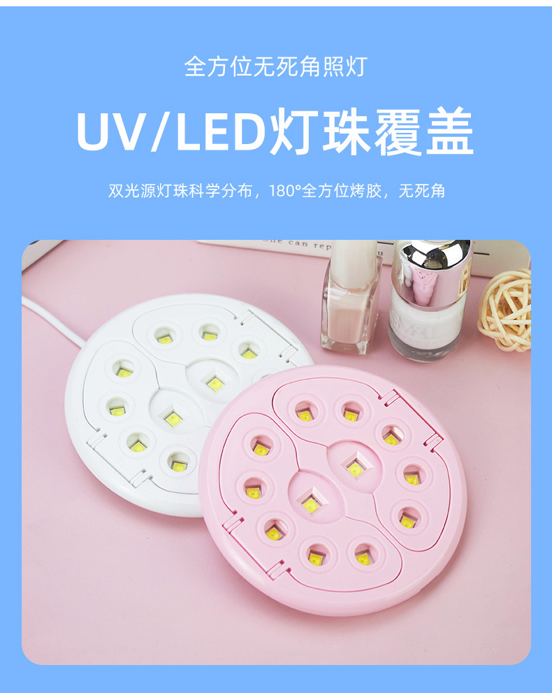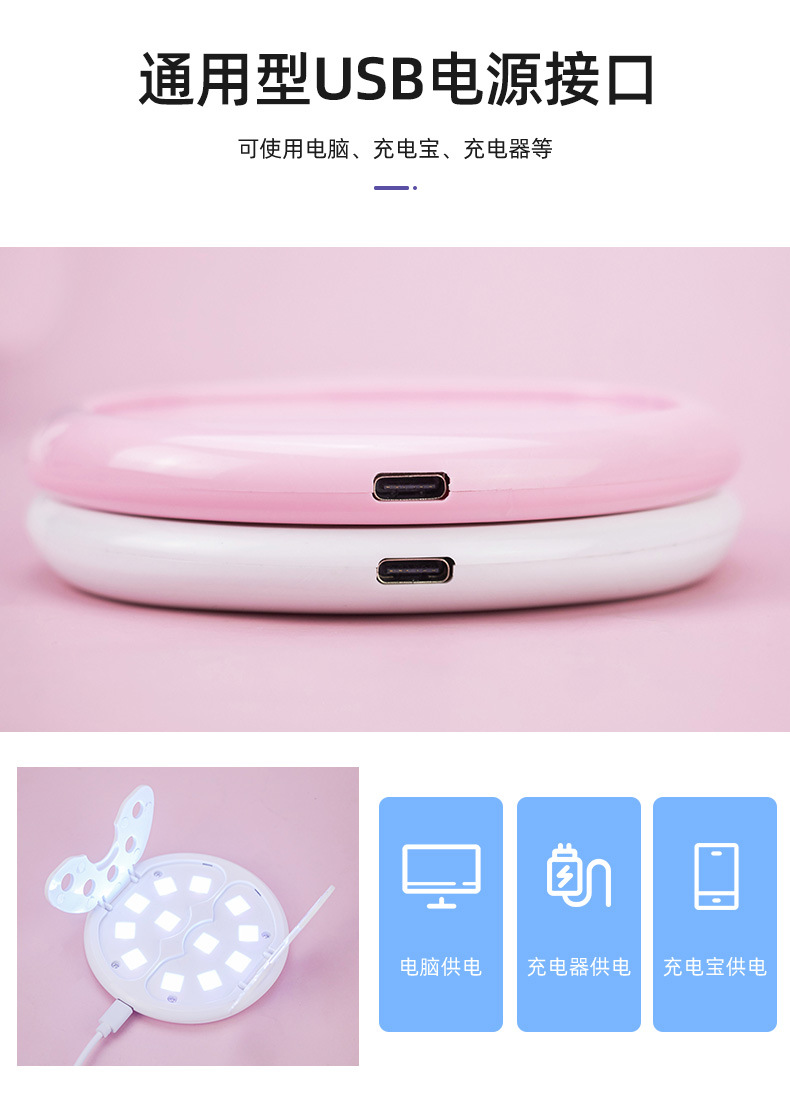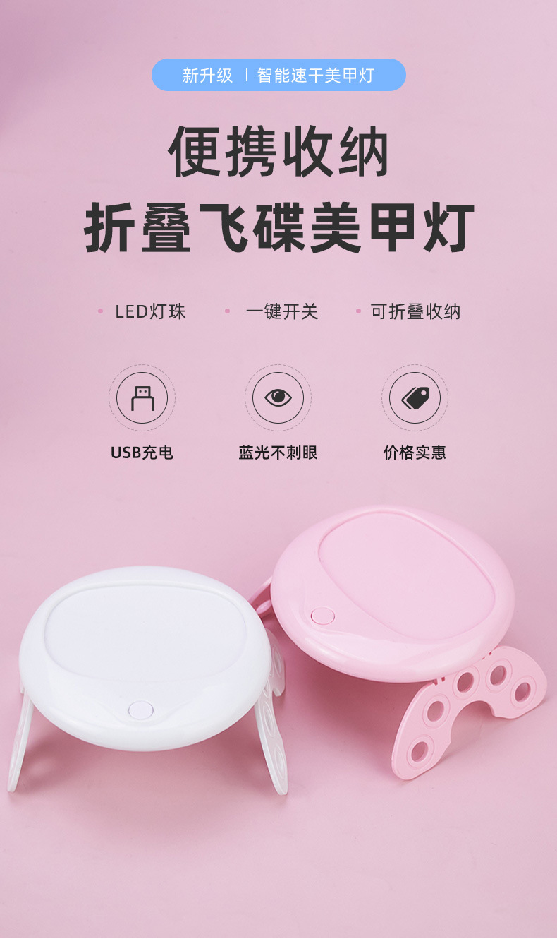 批发迷你指甲油胶烘干烤灯USB接口折叠式飞碟小型便携光疗美甲灯