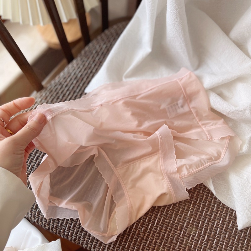 空气面膜轻薄冰丝无痕内裤女士蕾丝边少女内裤中腰内裤女