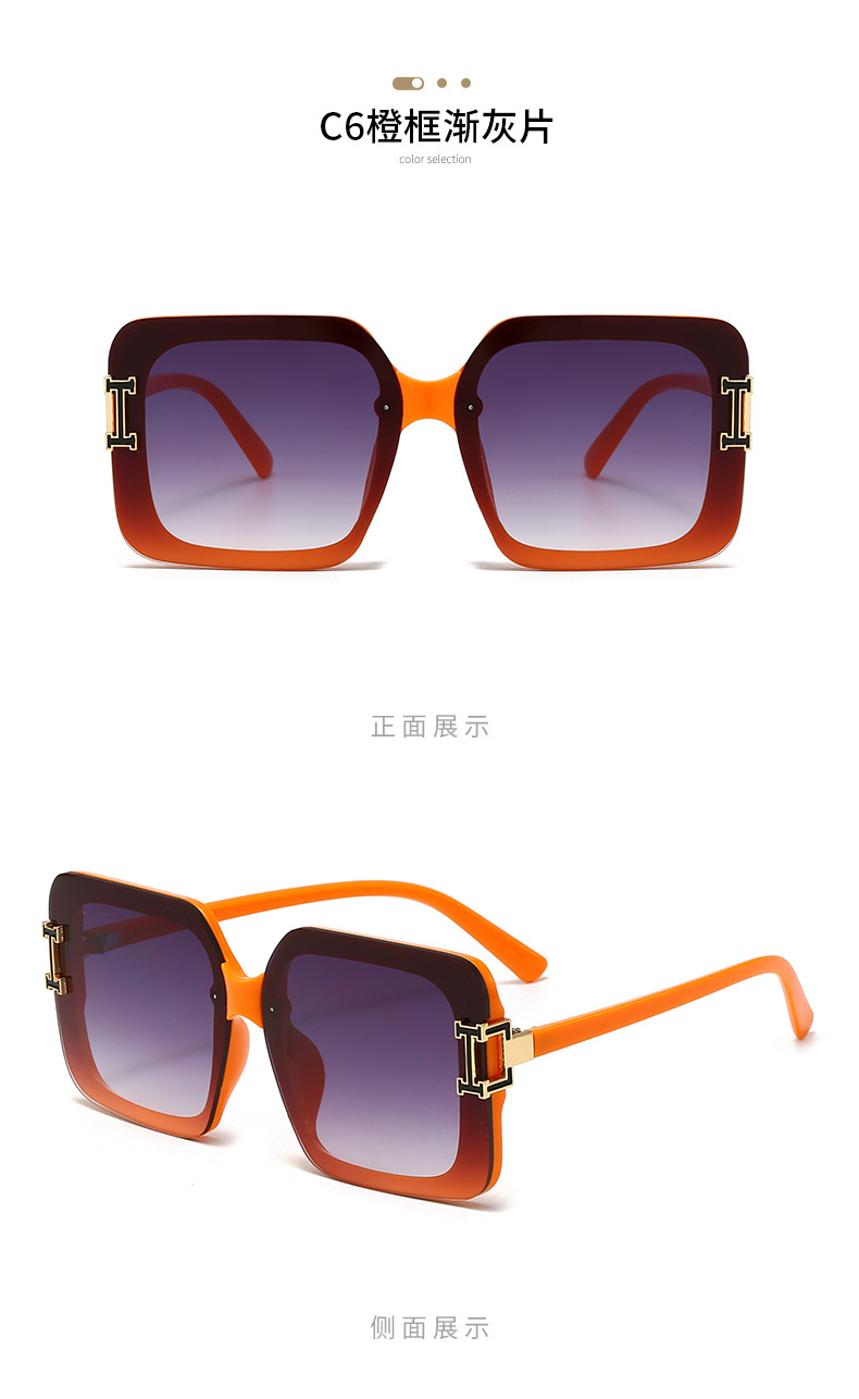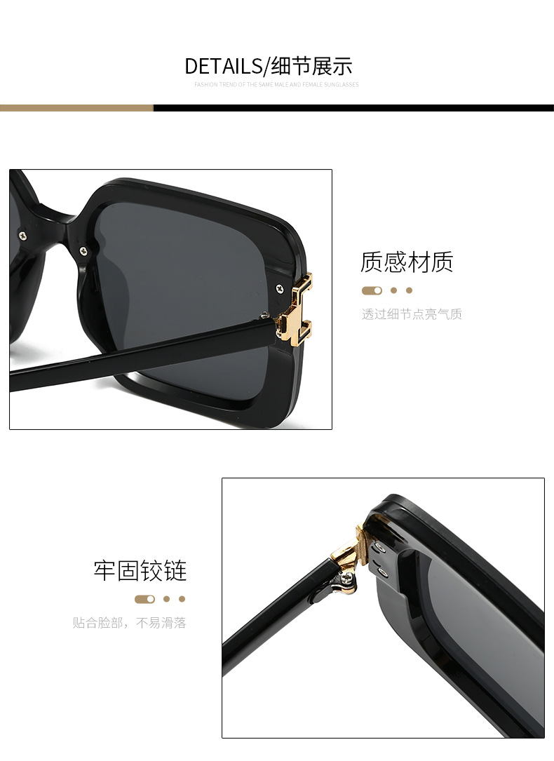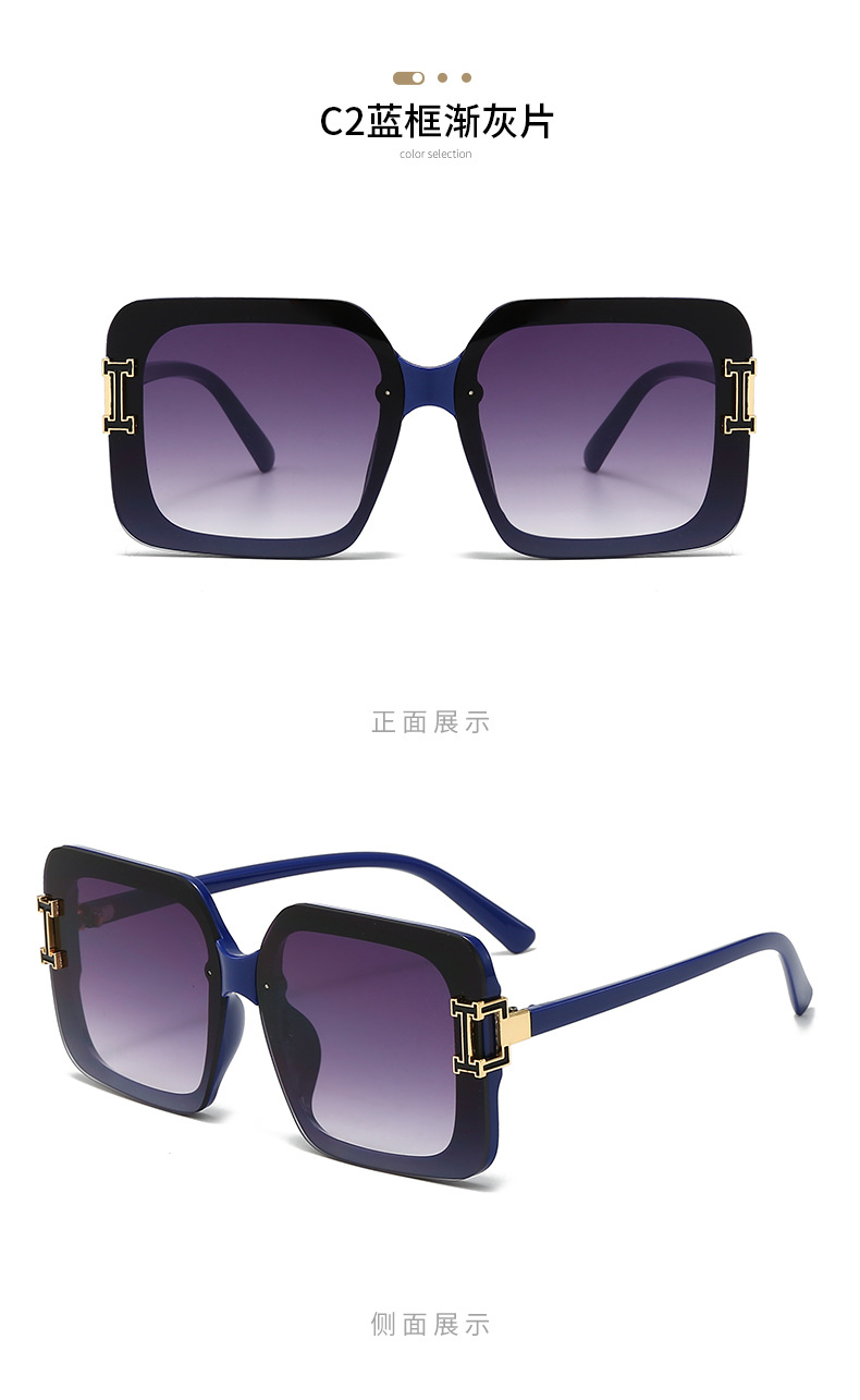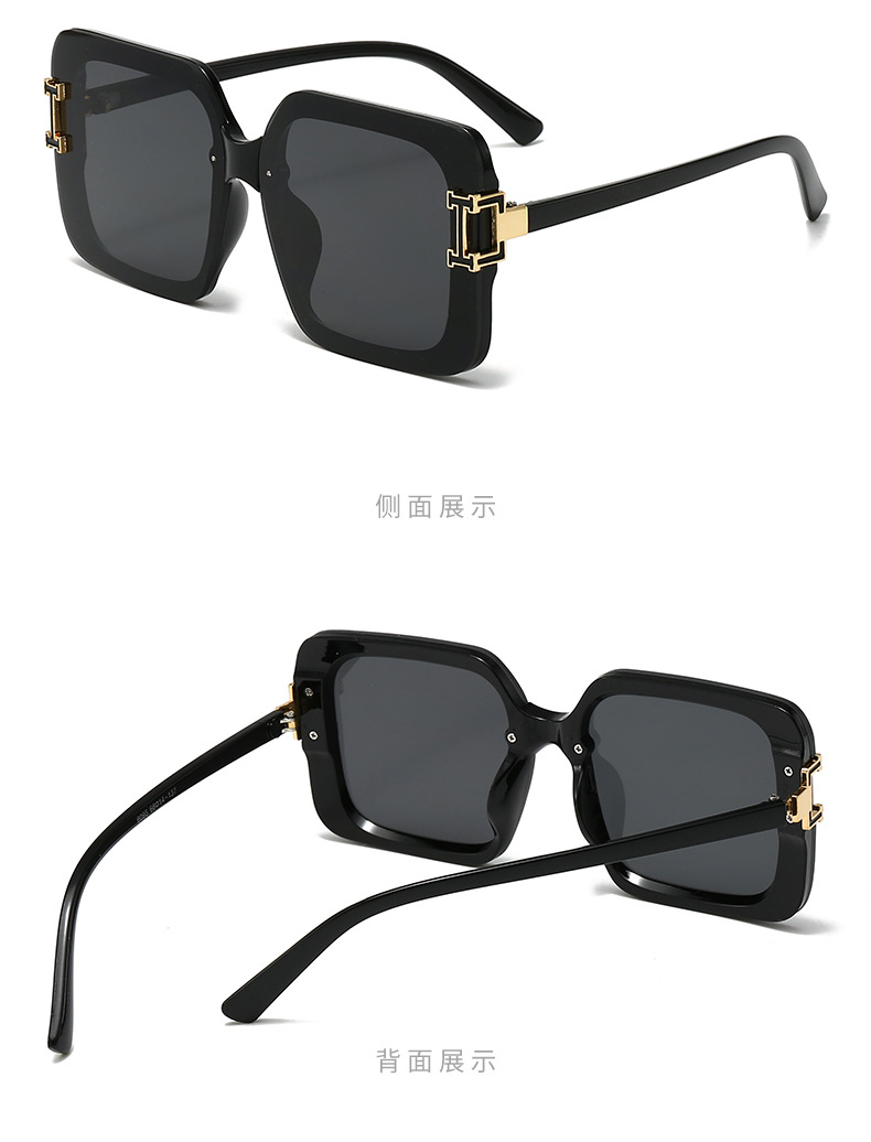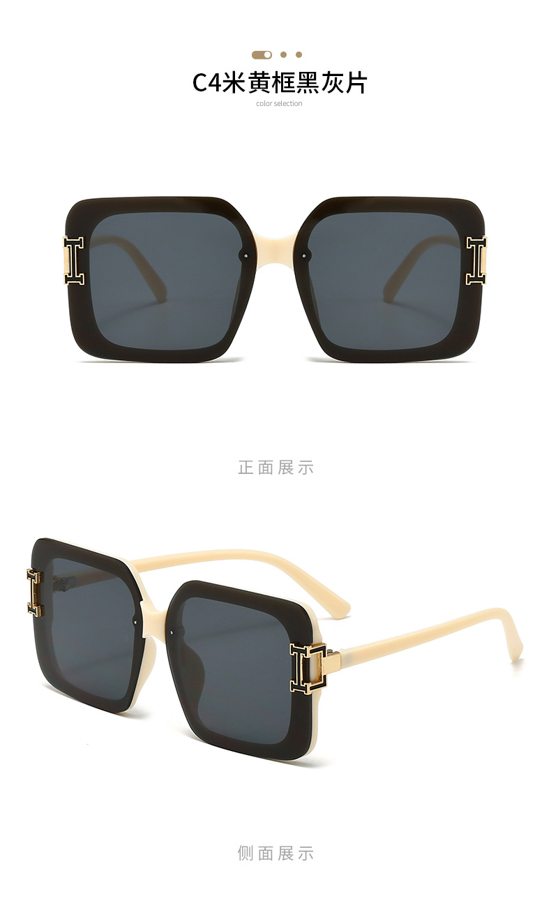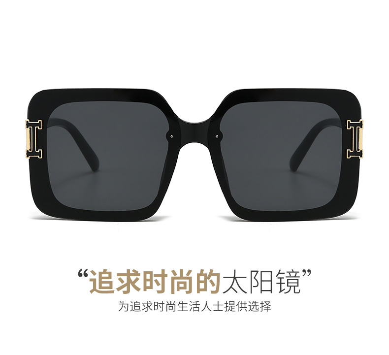 2024新款韩版时尚太阳镜H字母装饰遮阳防晒个性穿搭墨镜女方框