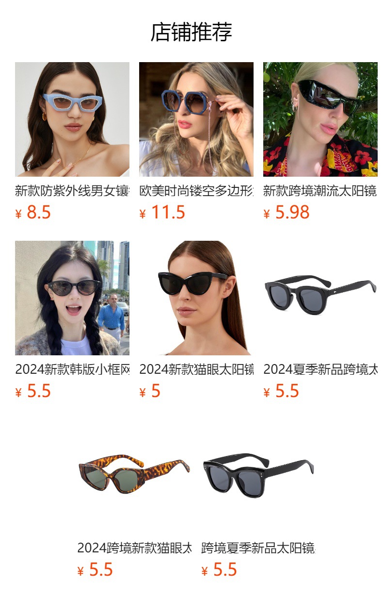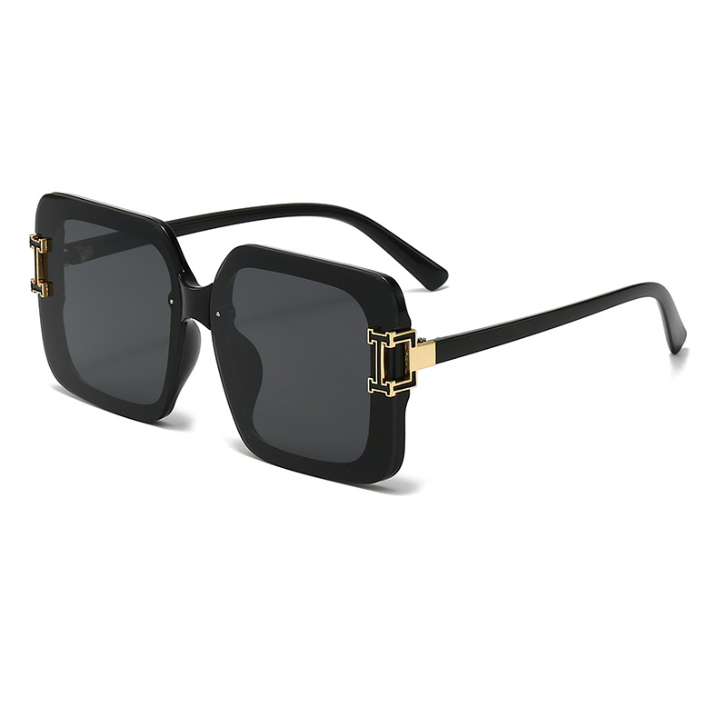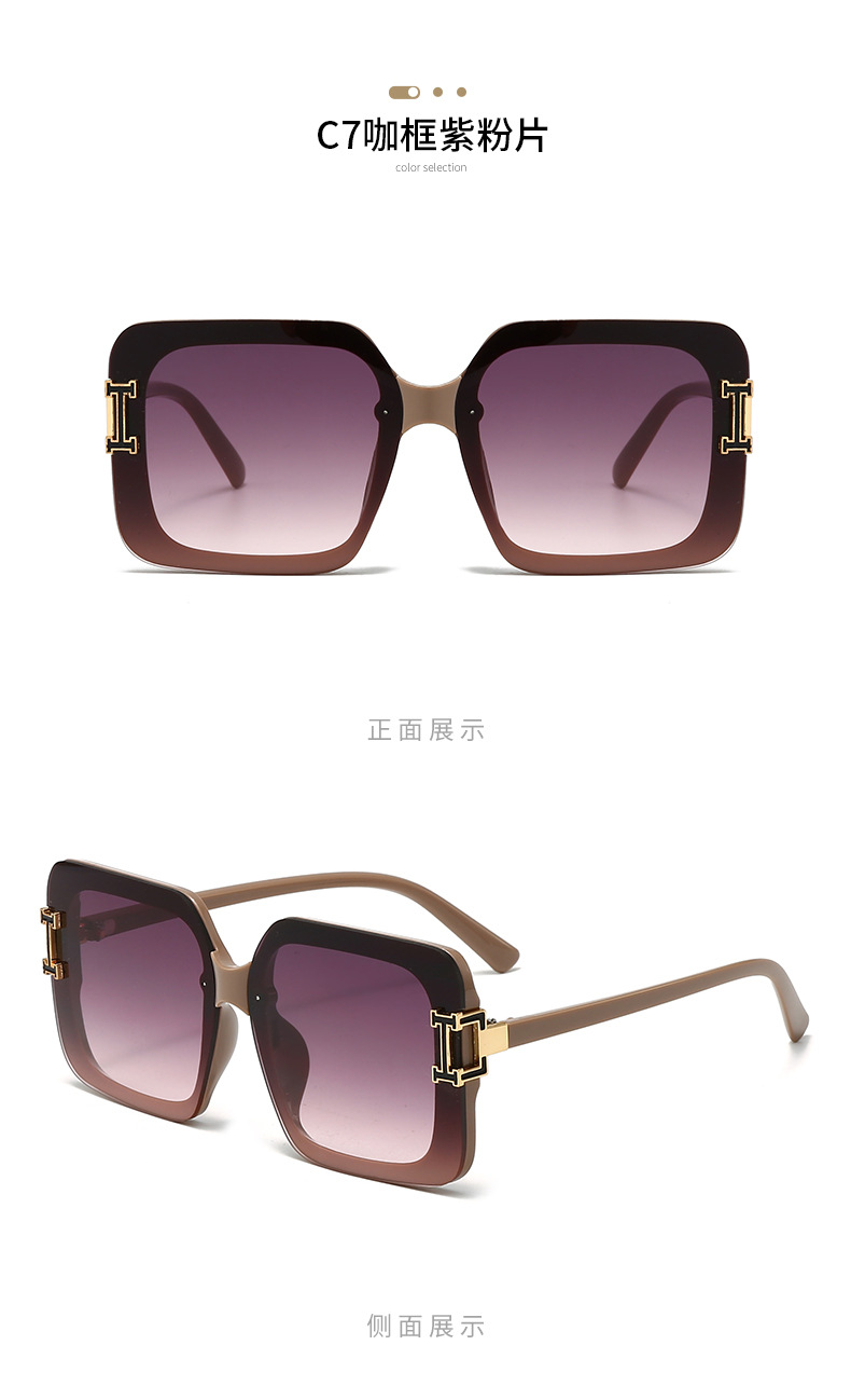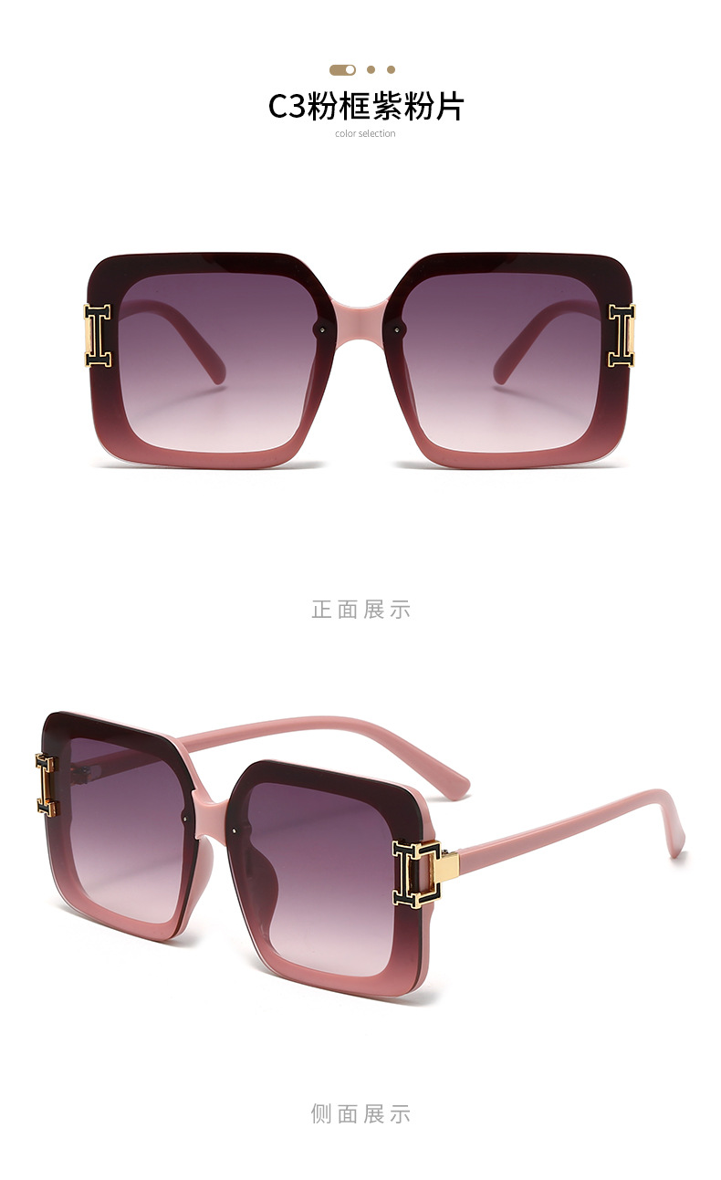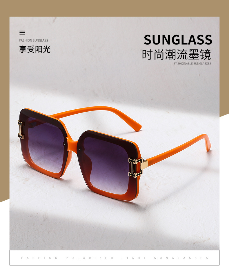 2024新款韩版时尚太阳镜H字母装饰遮阳防晒个性穿搭墨镜女方框