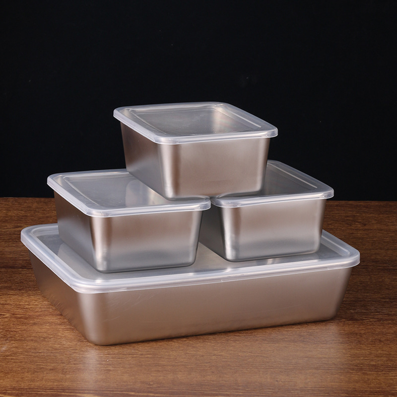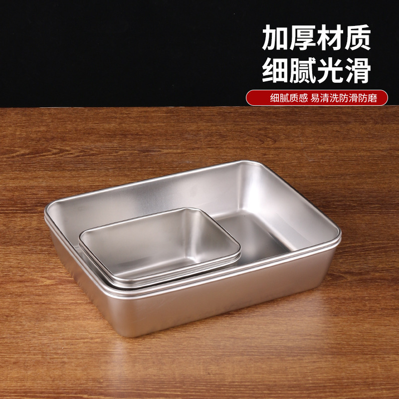 【带盖】大小号不锈钢毛巾盒味盒长方形方盘加厚加深保鲜盒收纳盒
