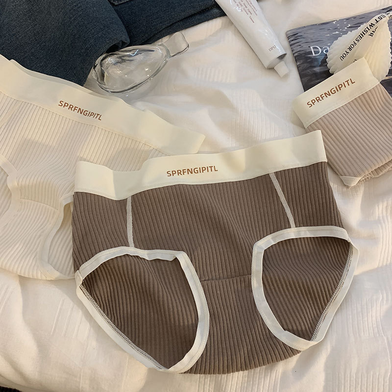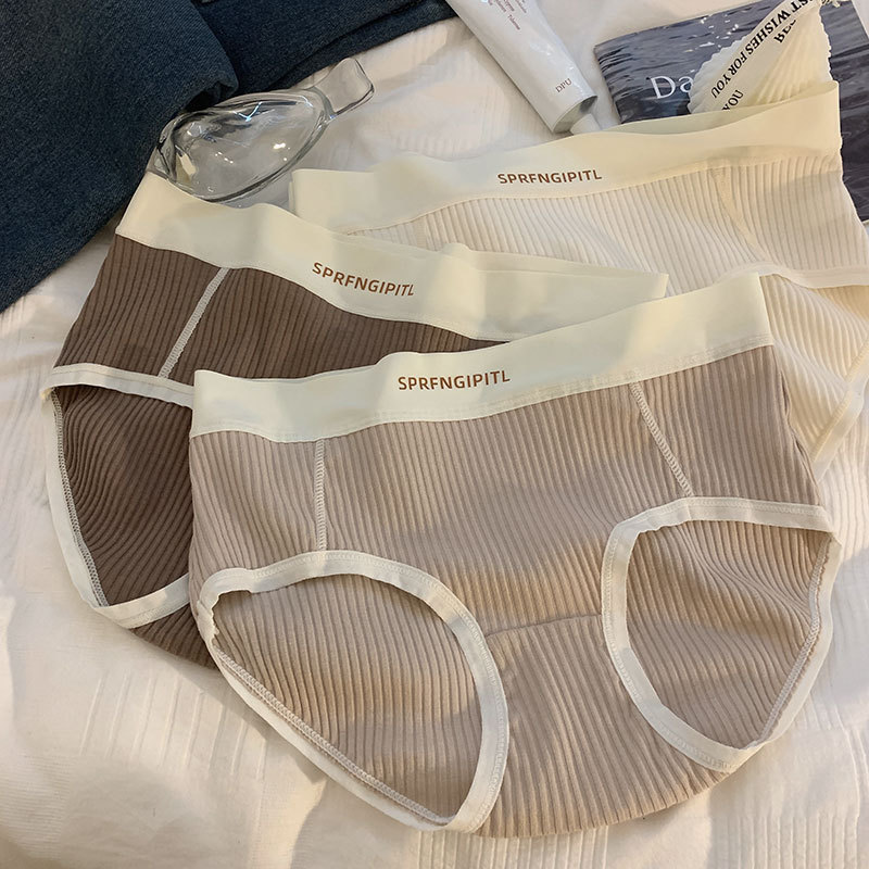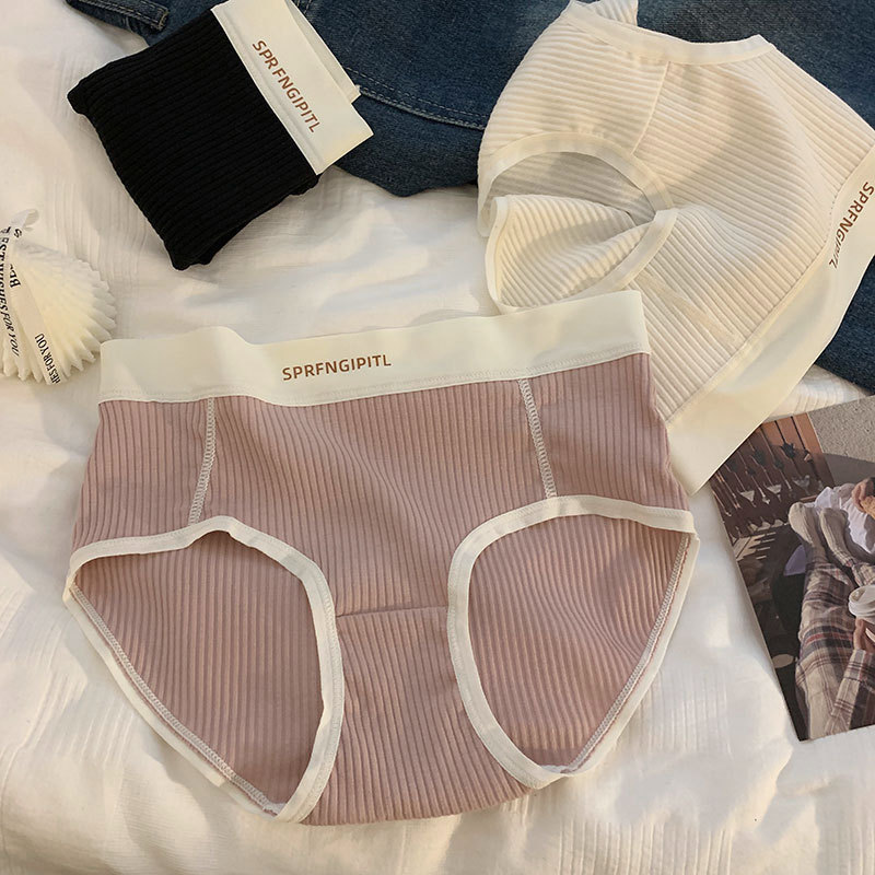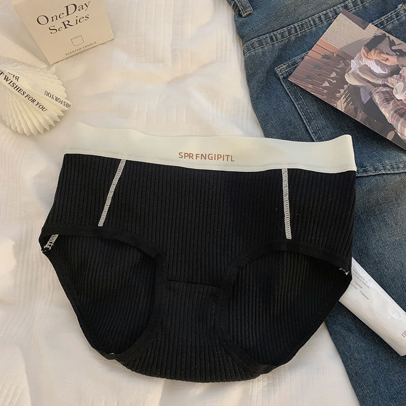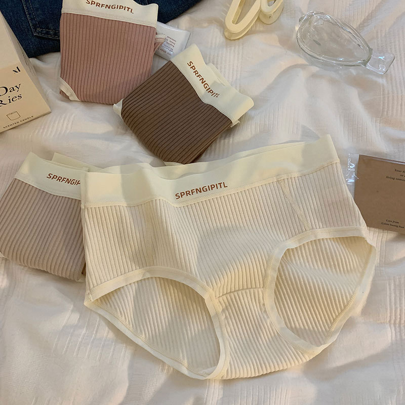 日系无痕螺纹棉少女内裤女士中腰纯棉裆透气舒适简约内裤女