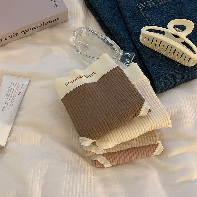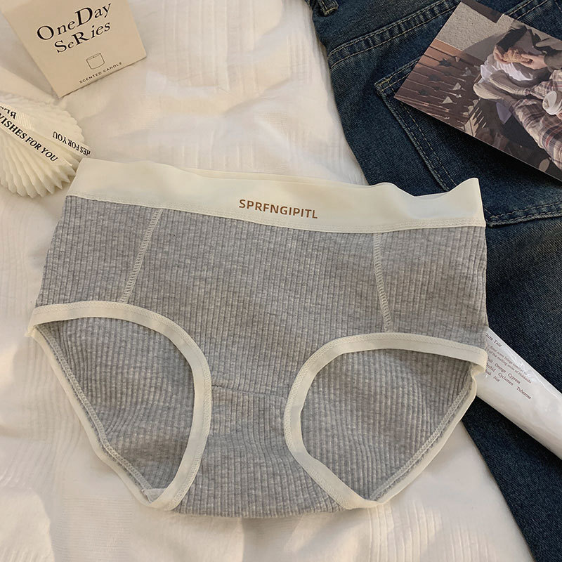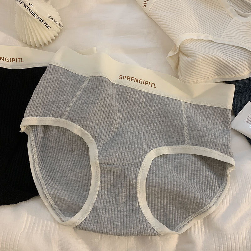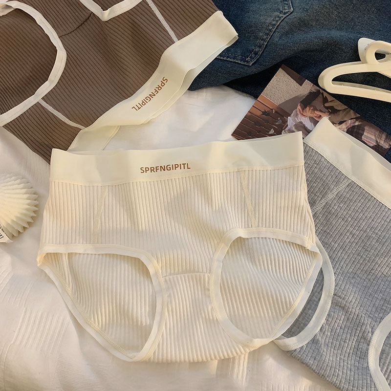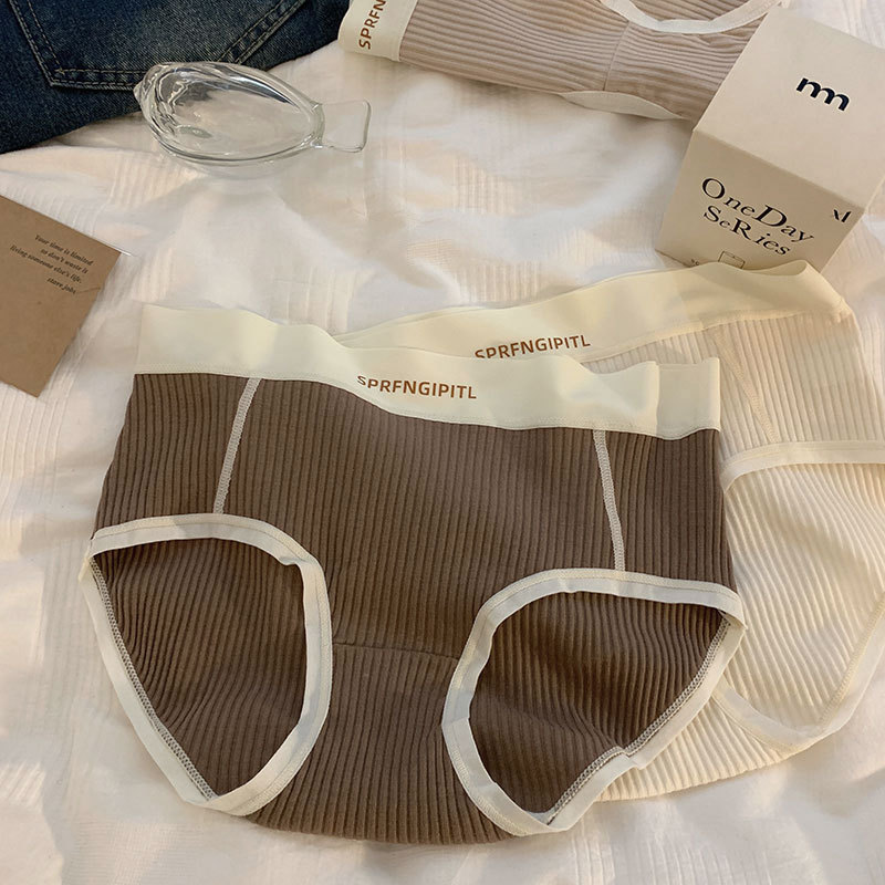 日系无痕螺纹棉少女内裤女士中腰纯棉裆透气舒适简约内裤女