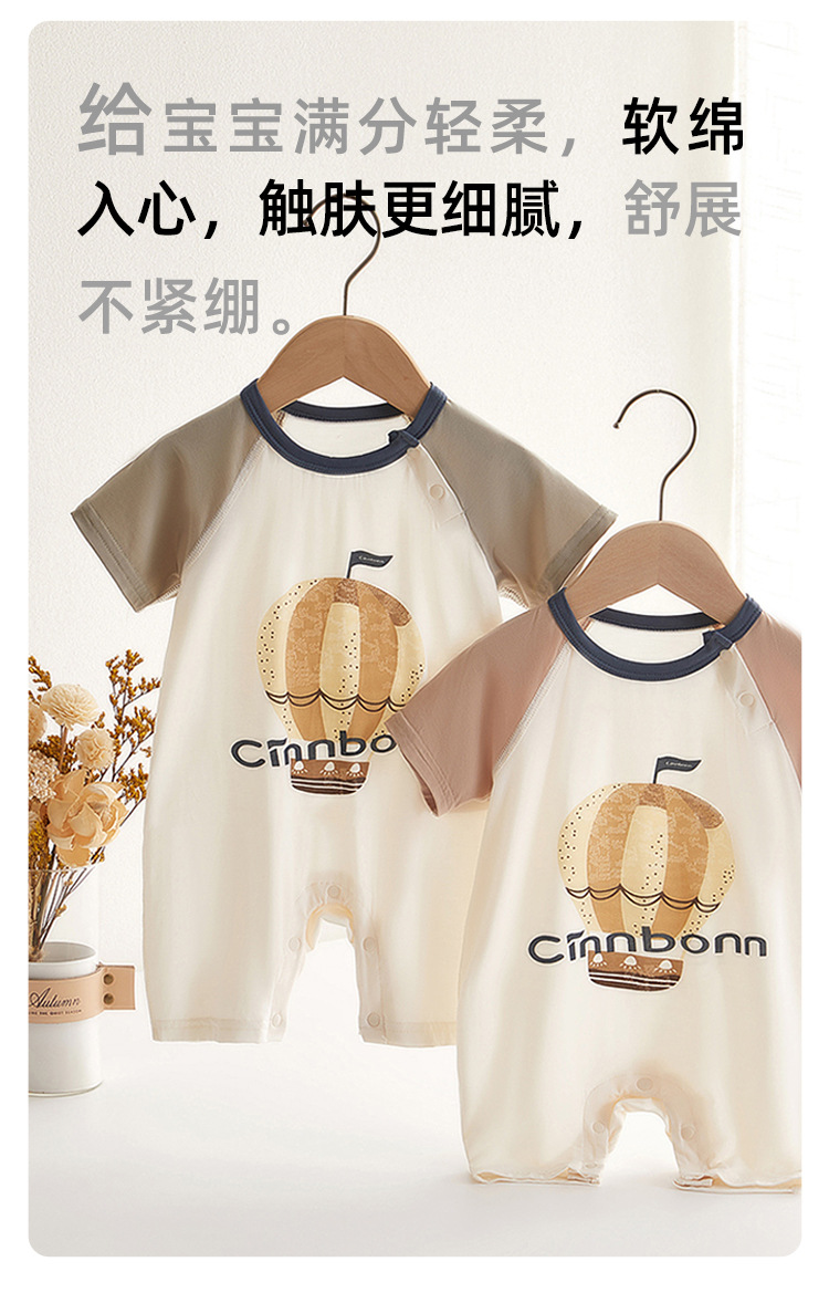 新生婴儿夏装连体衣莫代尔睡衣夏季薄款外出衣服宝宝短袖哈衣爬服