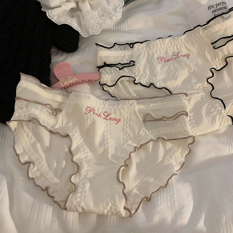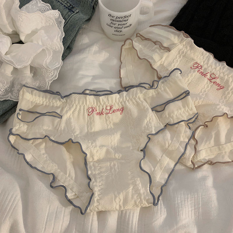 奶油田园风麻花内裤女士中腰纯棉裆透气女生透气内裤女