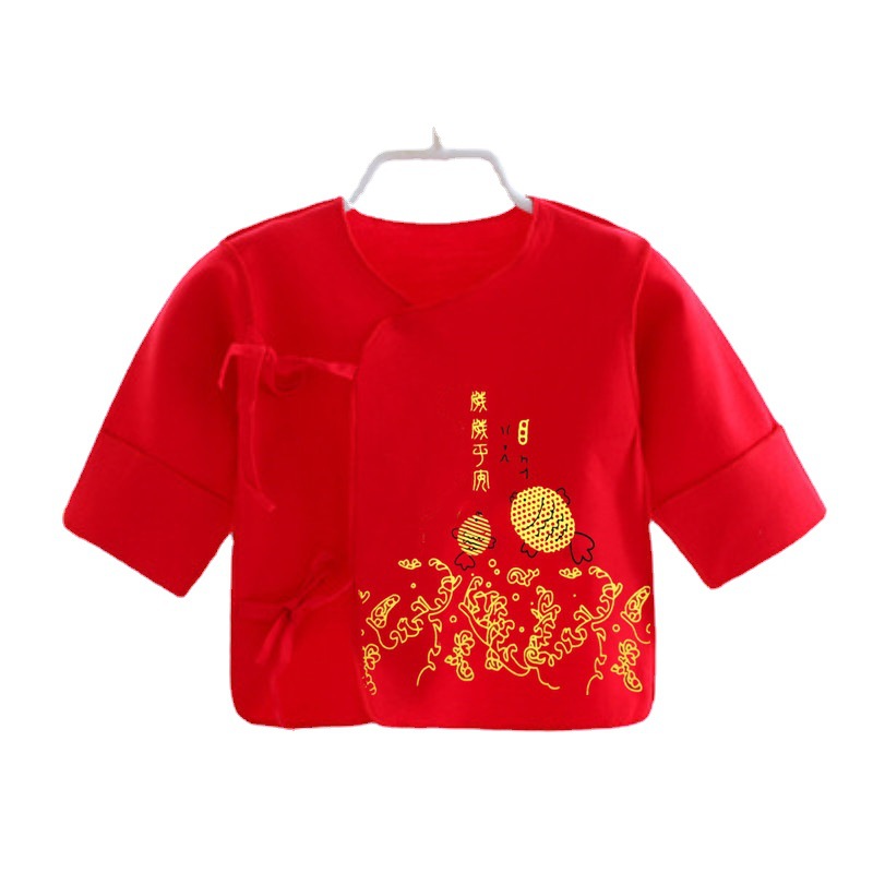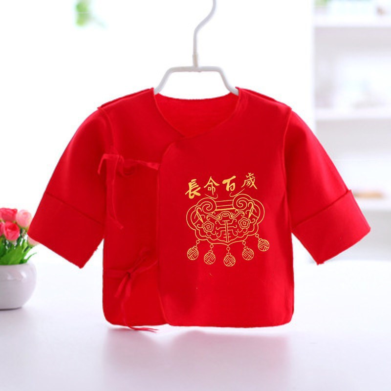 婴儿半背衣红色喜庆宝宝刚出生衣服0-3月初生儿小衣服无骨薄款