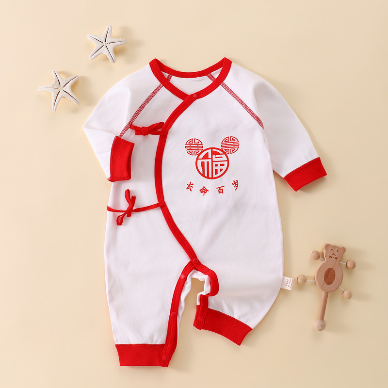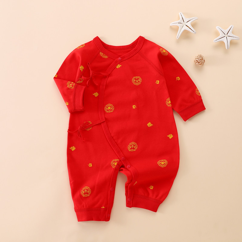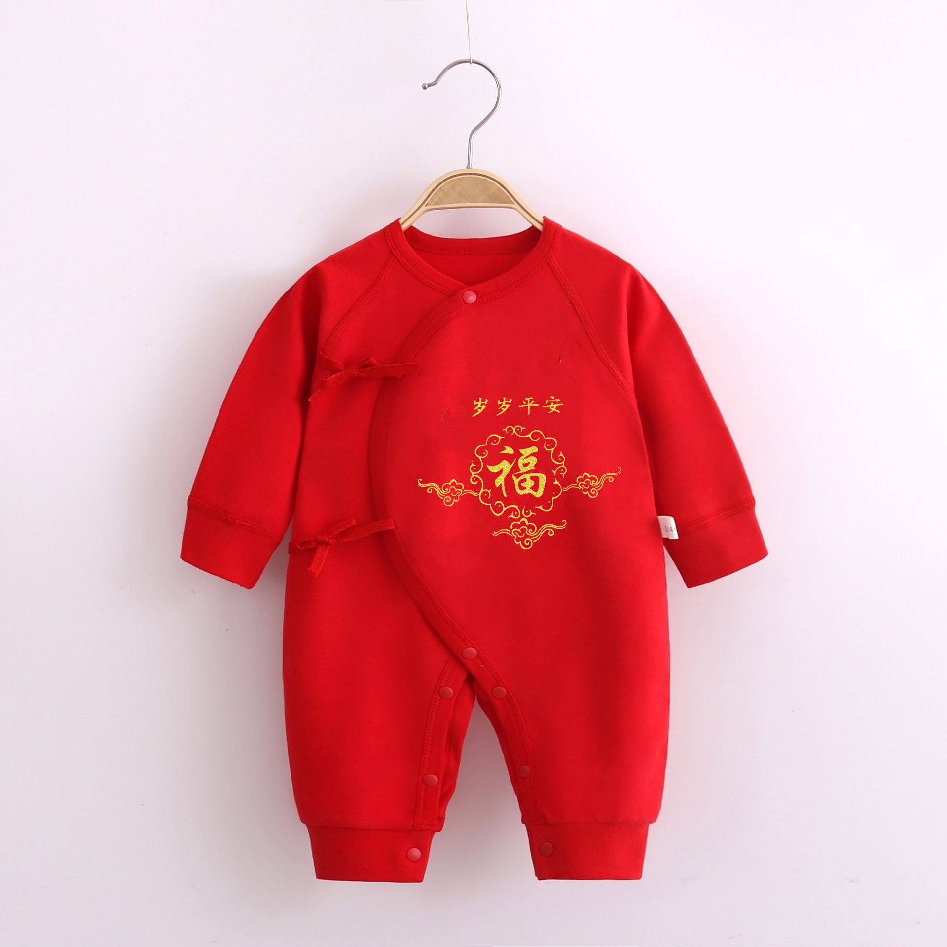 婴儿新款哈衣爬服0-1岁新生儿喜庆衣服满月百天连体衣宝宝蝴蝶衣