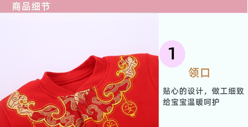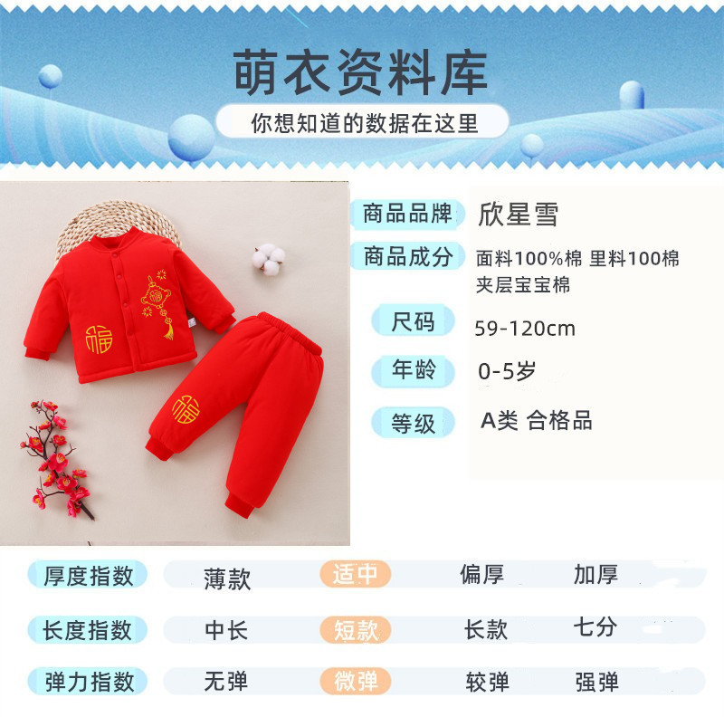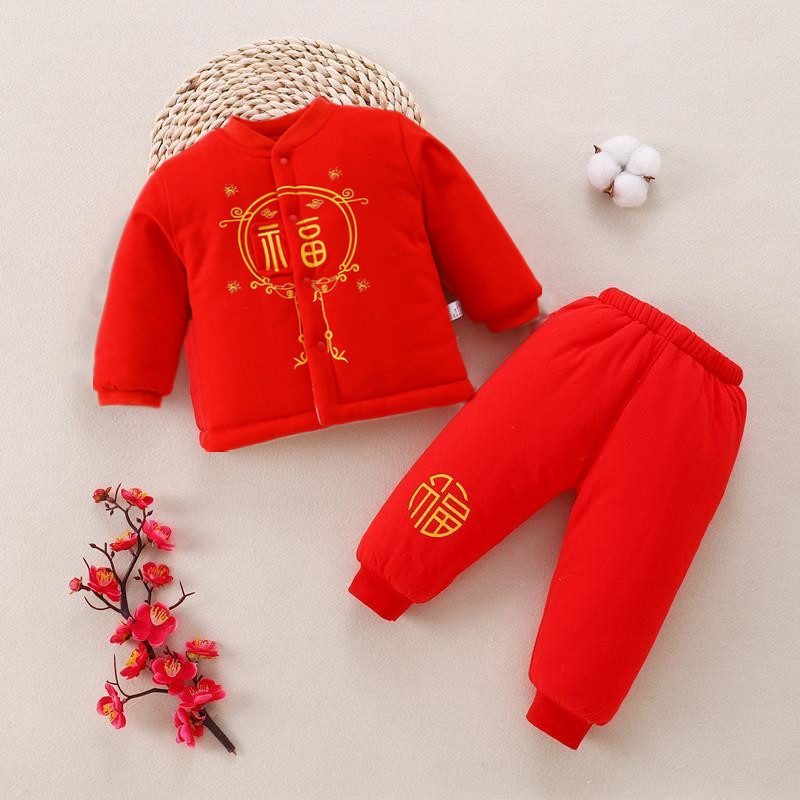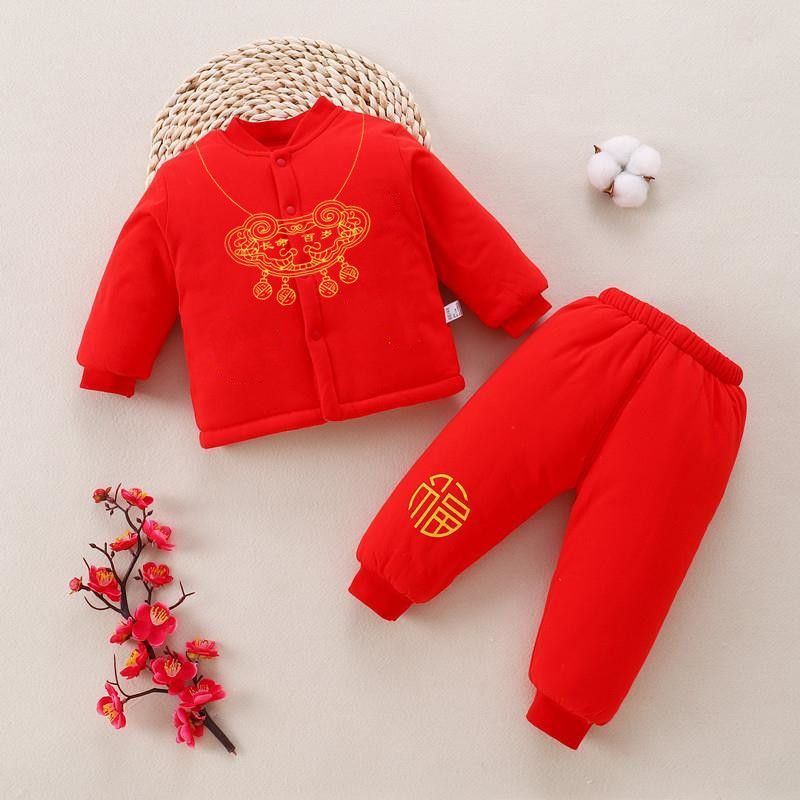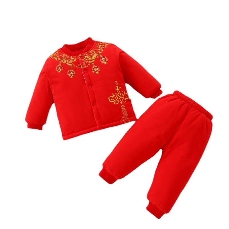 婴儿红色棉衣童装喜庆满月百天服秋冬棉袄棉裤套装2022时尚新款