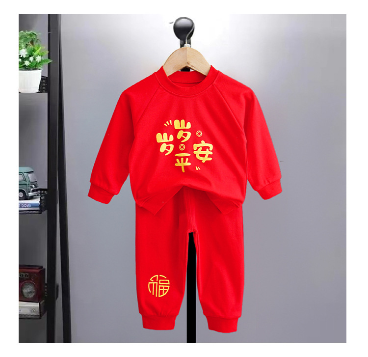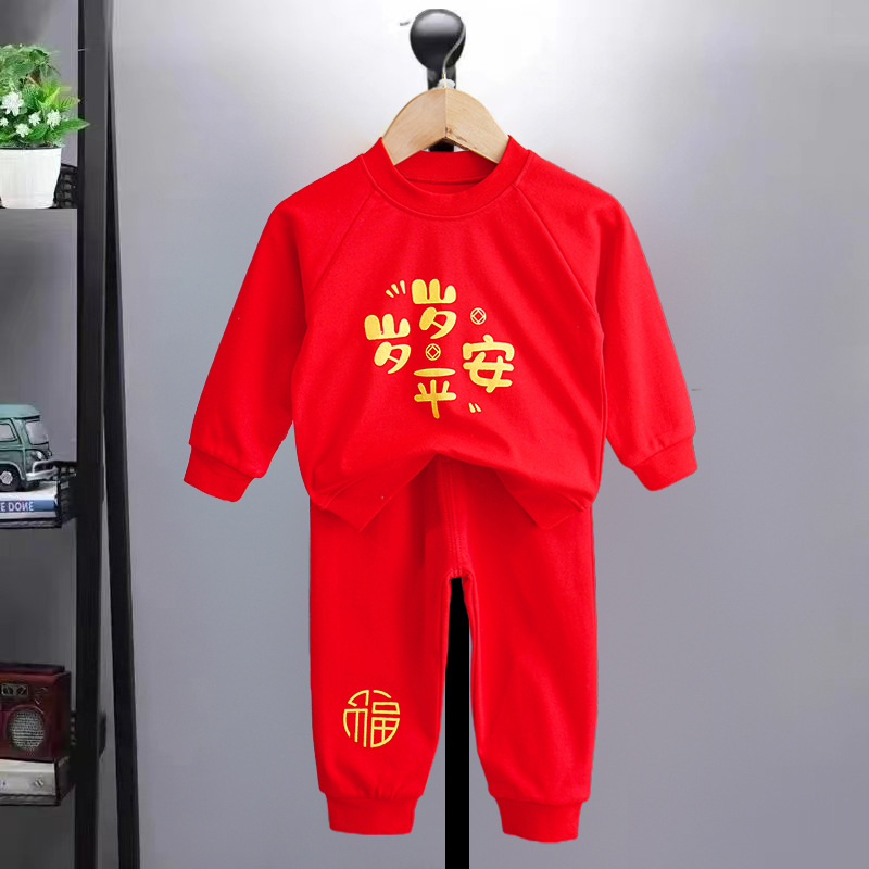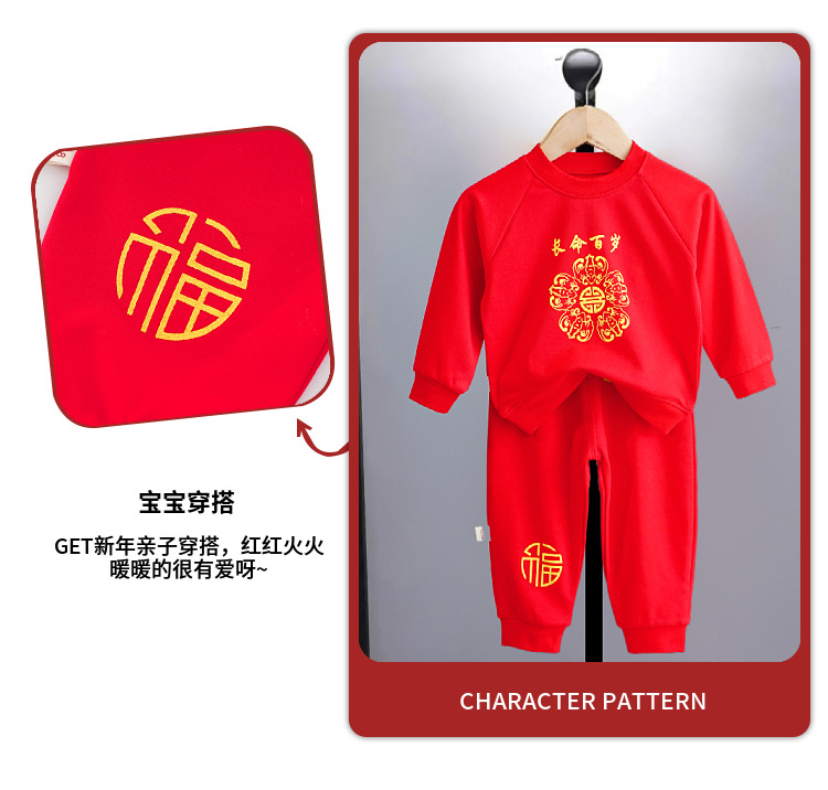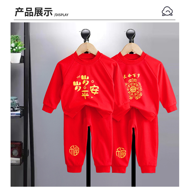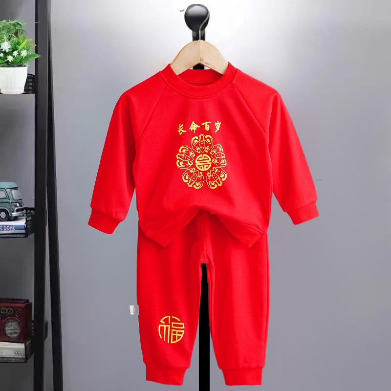 宝宝周岁抓周服红色套装卫衣儿童两件套洋气小童外穿喜庆过年服