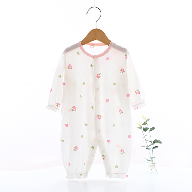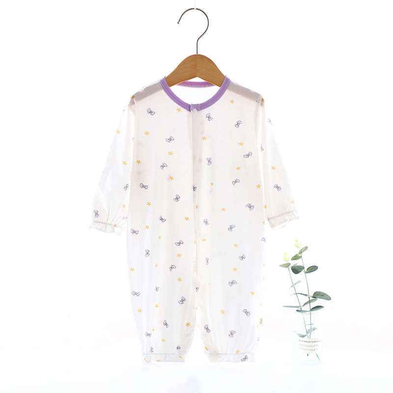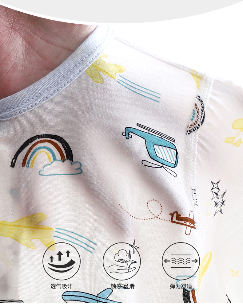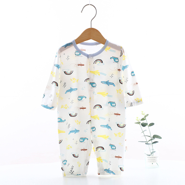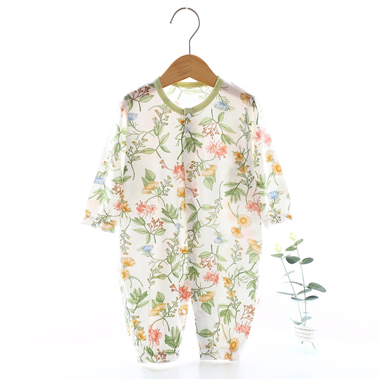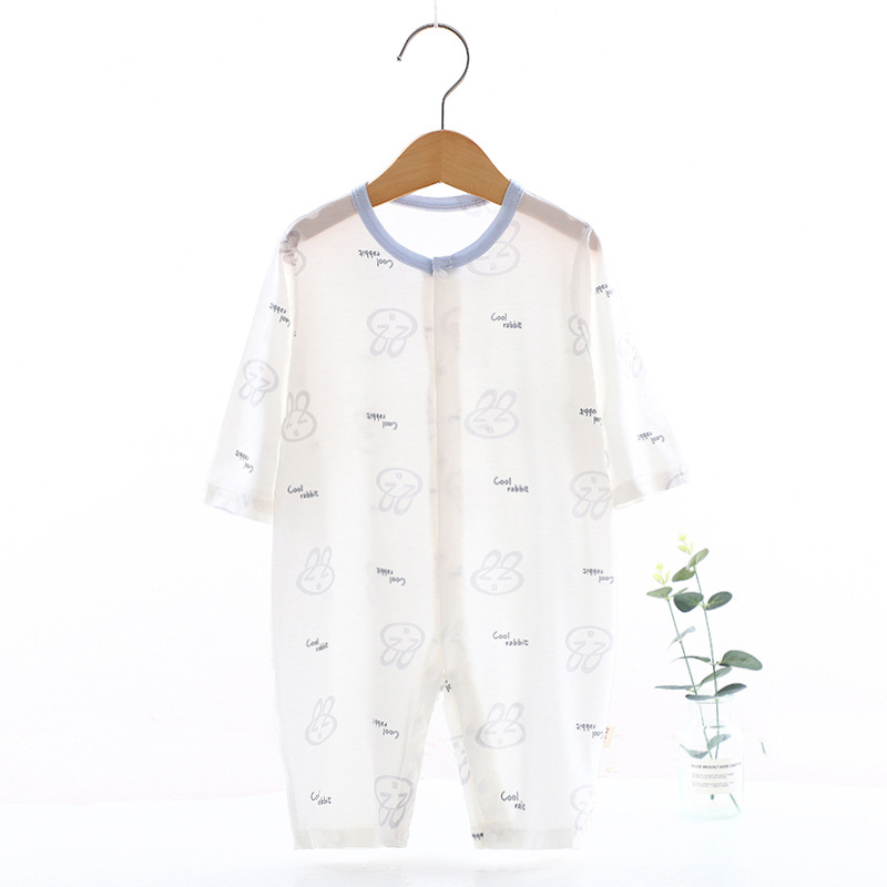 婴儿夏季连体薄款九分袖哈衣爬服宝宝丝滑夏季空调服外穿衣服a类