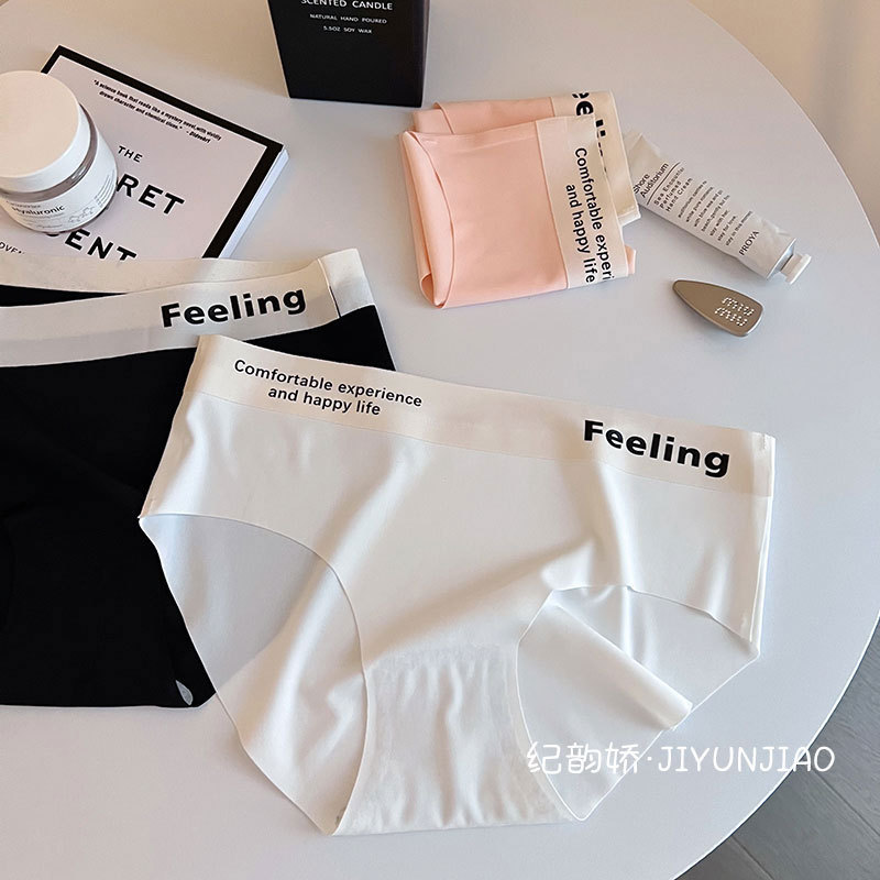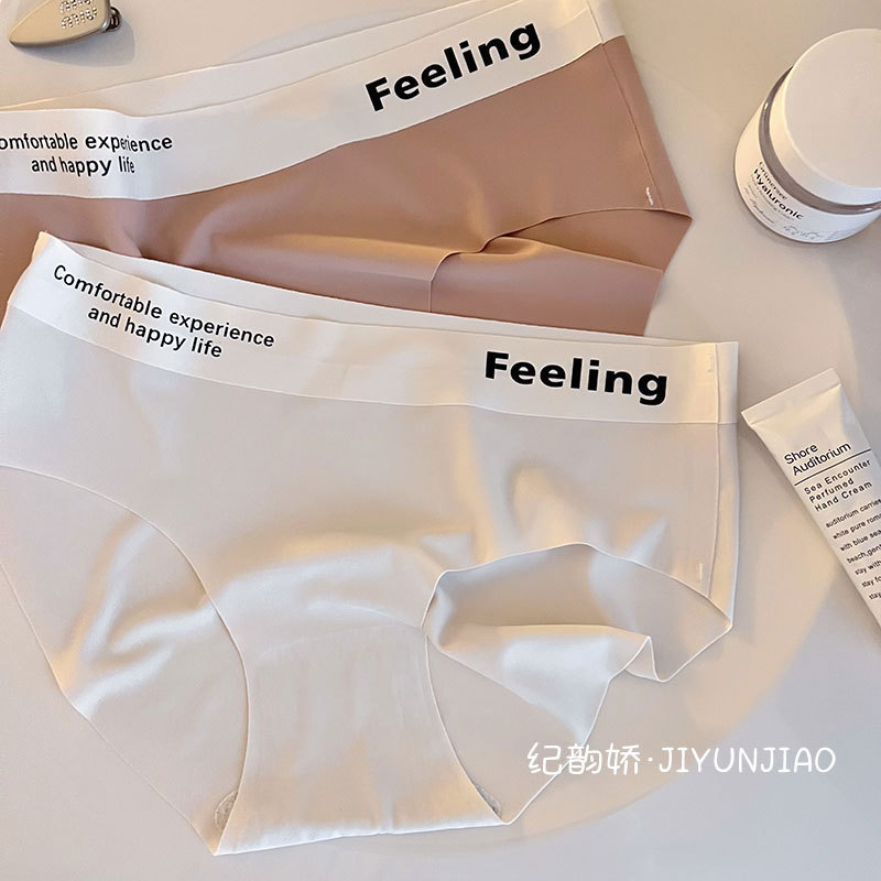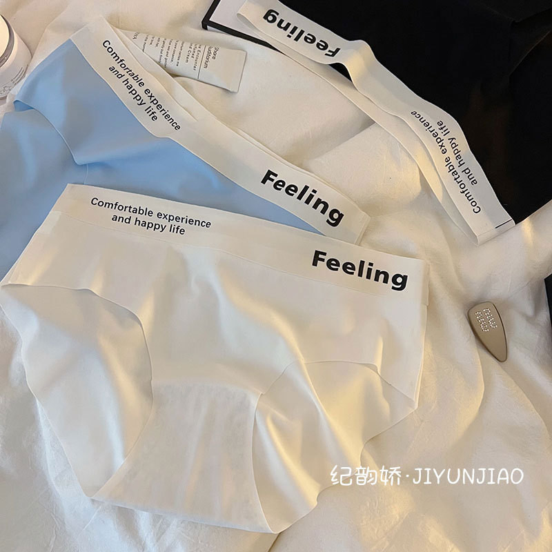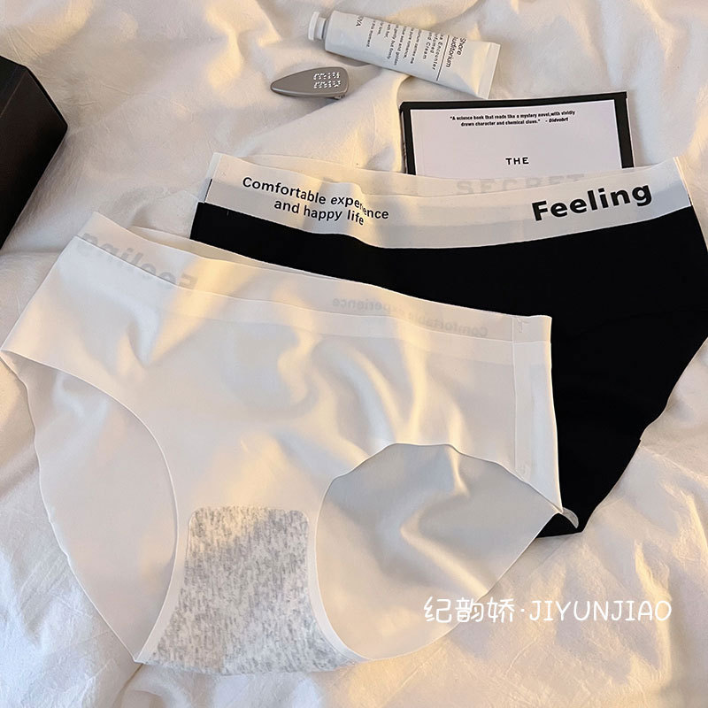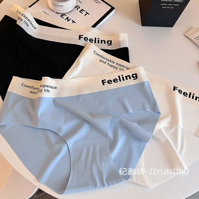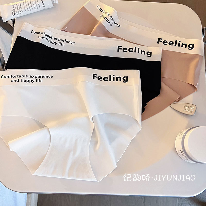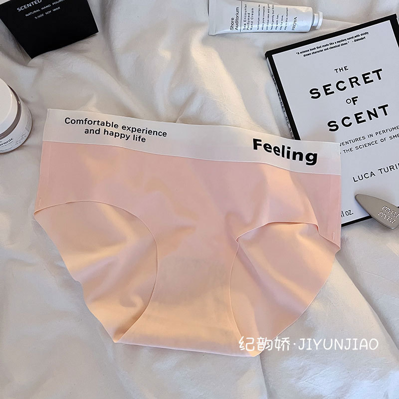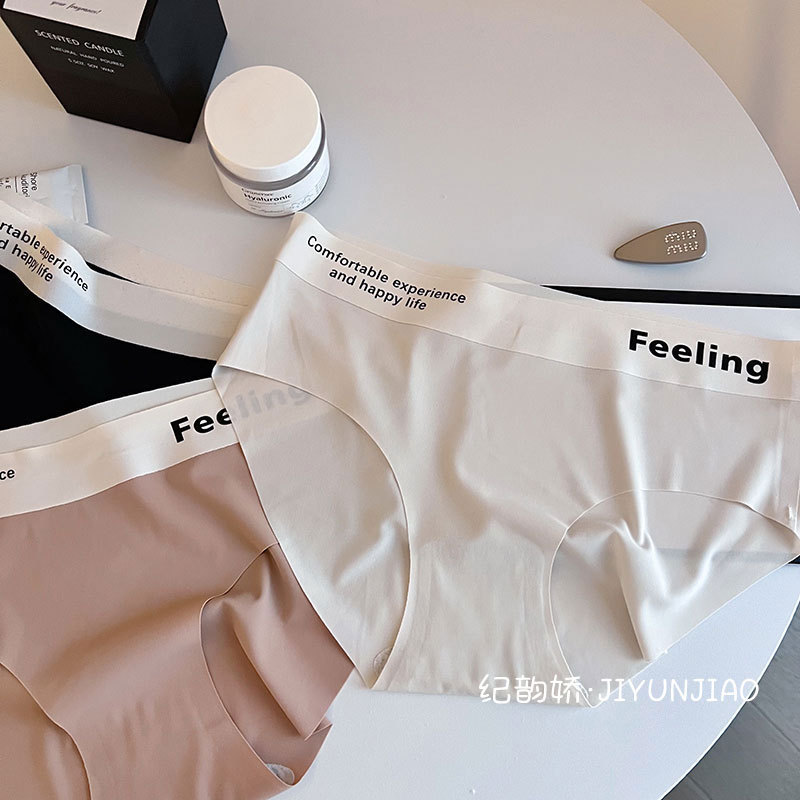 无痕字母中腰简约冰丝裸感舒适少女内裤女士透气亲肤内裤女
