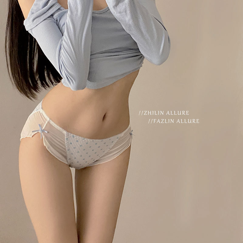 日系纯欲少女低腰网纱边甜美性感蝴蝶结波点纯棉裆内裤女
